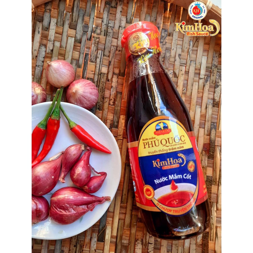 Khác với các loại nước mắm pha chế công nghiệp có sử dụng nhiều chất điều vị và phẩm màu, Nước Mắm Kim Hoa được làm 100% từ Cá Cơm tại vùng đảo Phú Quốc - là loại cá cơm giàu đạm, tươi ngon. Cá cơm sau khi được đánh bắt lên sẽ được ướp ngay trên tàu theo tỷ lệ 3 cá 1 muối, khi thuyền cập bến cá được đưa lên thùng, kiểm tra độ mặn và tiến hành gài nén - ủ chượp trong thùng gỗ đặc trưng. Quá trình này bắt buộc phải từ 12 tháng trở lên, để cá được thuỷ phân hoàn toàn, khi đó nước mắm được kéo rút ra sẽ có màu cánh gián đặc trưng, hương vị đậm đà và cái hậu ngọt của đạm cá được lắng đọng và cảm nhận rõ nơi cuống họng. Chính vì thế, nhiều khách hàng trước có thói quen sử dụng nước mắm công nghiệp khi nếm nước mắm Kim Hoa lần đầu sẽ cảm thấy mặn.