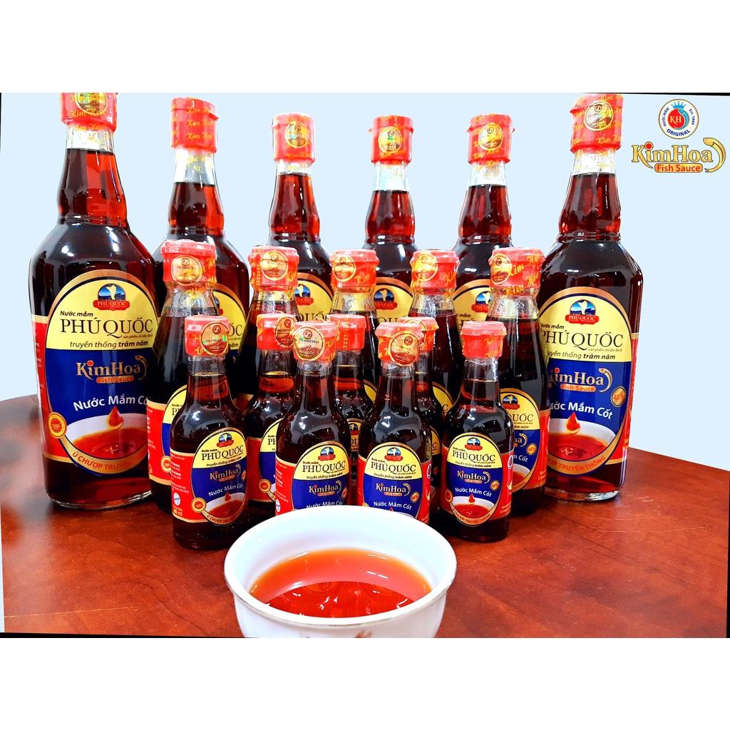 Khác với các loại nước mắm pha chế công nghiệp có sử dụng nhiều chất điều vị và phẩm màu, Nước Mắm Kim Hoa được làm 100% từ Cá Cơm tại vùng đảo Phú Quốc - là loại cá cơm giàu đạm, tươi ngon. Cá cơm sau khi được đánh bắt lên sẽ được ướp ngay trên tàu theo tỷ lệ 3 cá 1 muối, khi thuyền cập bến cá được đưa lên thùng, kiểm tra độ mặn và tiến hành gài nén - ủ chượp trong thùng gỗ đặc trưng. Quá trình này bắt buộc phải từ 12 tháng trở lên, để cá được thuỷ phân hoàn toàn, khi đó nước mắm được kéo rút ra sẽ có màu cánh gián đặc trưng, hương vị đậm đà và cái hậu ngọt của đạm cá được lắng đọng và cảm nhận rõ nơi cuống họng. Chính vì thế, nhiều khách hàng trước có thói quen sử dụng nước mắm công nghiệp khi nếm nước mắm Kim Hoa lần đầu sẽ cảm thấy mặn.