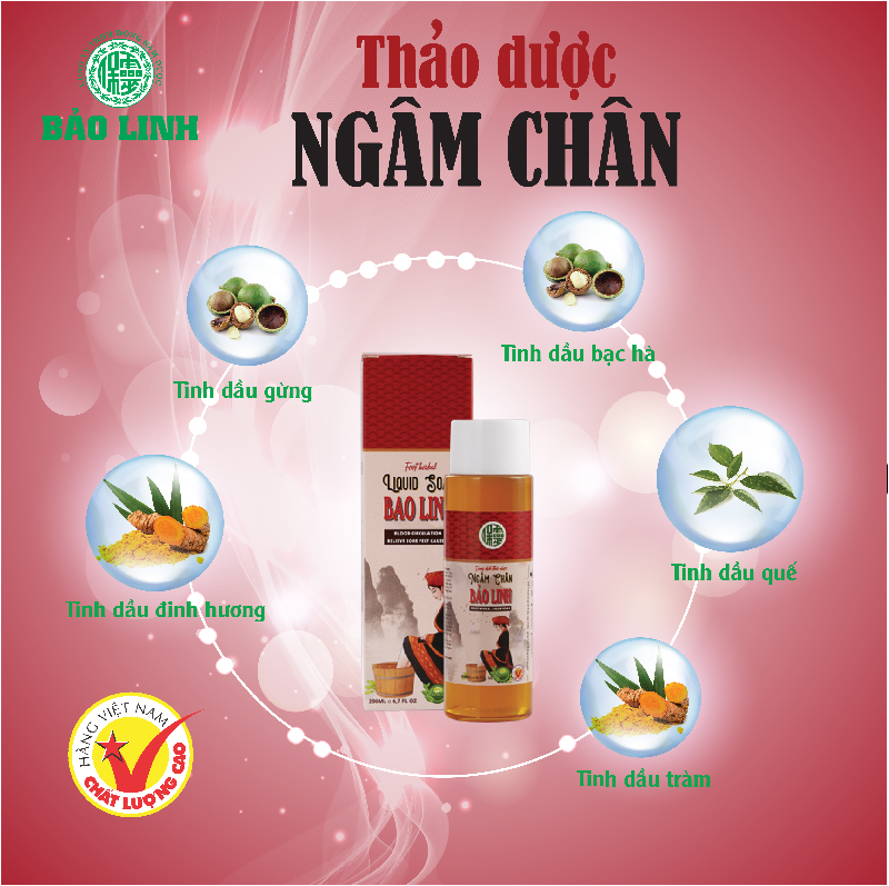 DUNG DỊCH THẢO DƯỢC NGÂM CHÂN BẢO LINH 200ml và 70ml CÔNG DỤNG: - Dung dịch ngâm chân thảo dược Bảo Linh có tác dụng khu phong, tán hàn, ấm can phế, tỳ, vị, hỗ