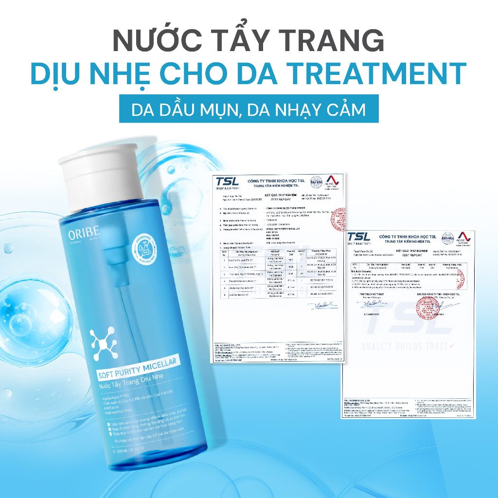 Oribe Soft Purity Micellar là nước tẩy trang dịu nhẹ, ứng dụng công nghệ micellar kết hợp hoạt chất Jojoba Aqua 120, chiết xuất hoa cúc và trái cây cùng acid dịu nhẹ giúp làm sạch lớp trang điểm, bã nhờn và bụi bẩn hiệu quả mà vẫn giữ lại độ ẩm và sự mềm mại cho làn da. An toàn cho mọi loại da, kể cả da nhạy cảm.