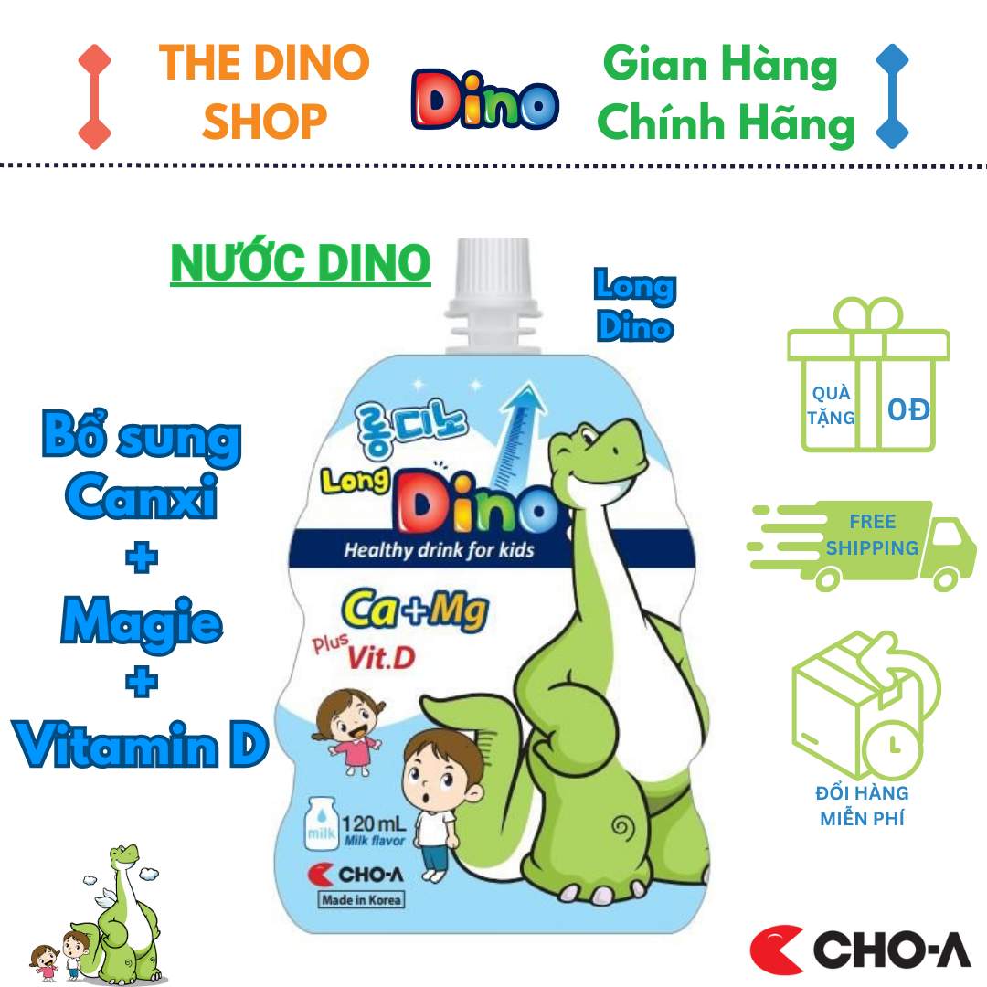 Mua tại TiktokNước Uống Dinh Dưỡng Vị Sữa Dành Cho Trẻ Em Long Dino Mẫu Mới (10 Gói x 120ml) Nước uống dinh dưỡng Dino là sự lựa chọn hoàn hảo dành cho trẻ em trên 3 tuổi, là giải pháp tuyệt vời để hạn chế trẻ sử dụng các loại nước có gas. Sản phẩm được sản xuất bởi dây chuyền công nghệ hiện đại đạt chuẩn HACCP và GMP, được đảm bảo chất lượng dưới sự kiểm tra nghiêm ngặt của công ty CHO-A PHARM Hàn Quốc. Công Dụng: