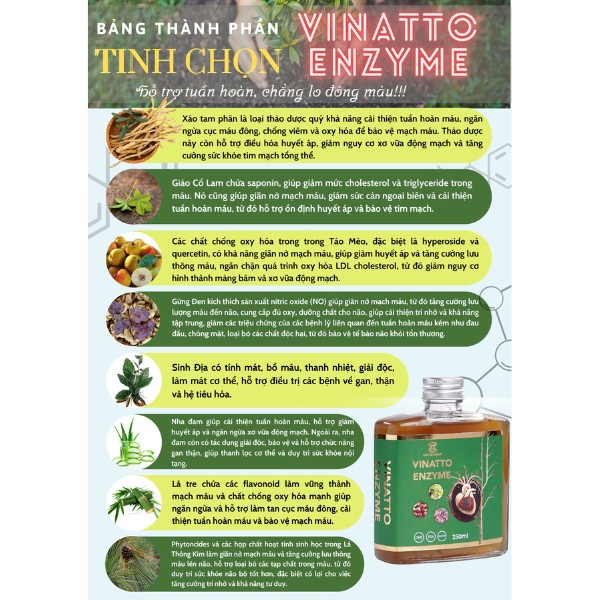 Sản phẩm Vinatto Enzyme - Hỗ trợ phòng ngừa đột quỵ hiệu quả