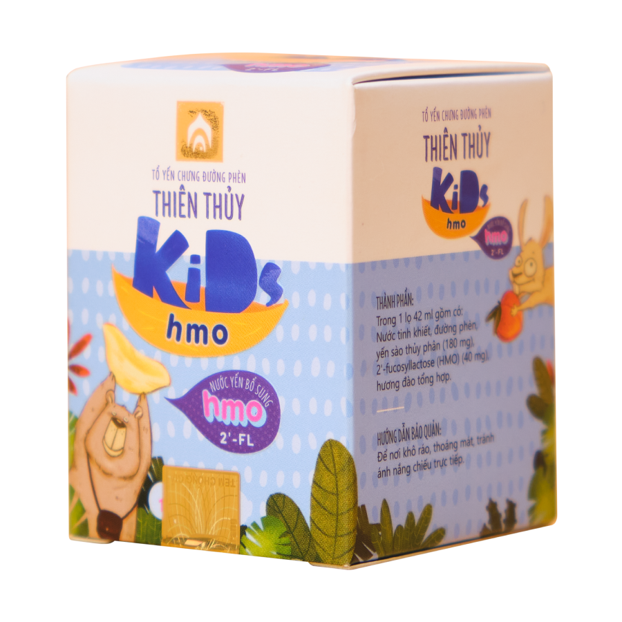 Mua tại TiktokNƯỚC YẾN SÀO THIÊN THỦY KIDS HMO - YẾN KIDS ▌THÀNH PHẦN DINH DƯỠNG CÓ TRONG NƯỚC YẾN SÀO THIÊN THỦY KIDS HMO? ▌THÀNH PHẦN Nước tinh khiết, đường phèn, yến sào (13%), 2'Fucosyllactose (HMO) (0.13%), hương đào tổng hợp, chất ổn định (418). ▌ HƯỚNG DẪN SỬ DỤNG NƯỚC YẾN SÀO THIÊN THỦY KIDS HMO?