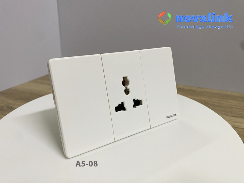 Ổ điện đơn 3 chấu đa năng âm tường A5-08 Novalink, thiết kế chống cháy an toàn khi sử dụng