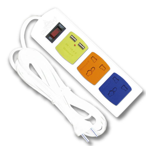 ✨Ổ Cắm Điện Nối Dài Robot 2 Ổ 3 Chấu (Có Nắp Che) Và Cổng Sạc USB - Hàng Chính Hãng