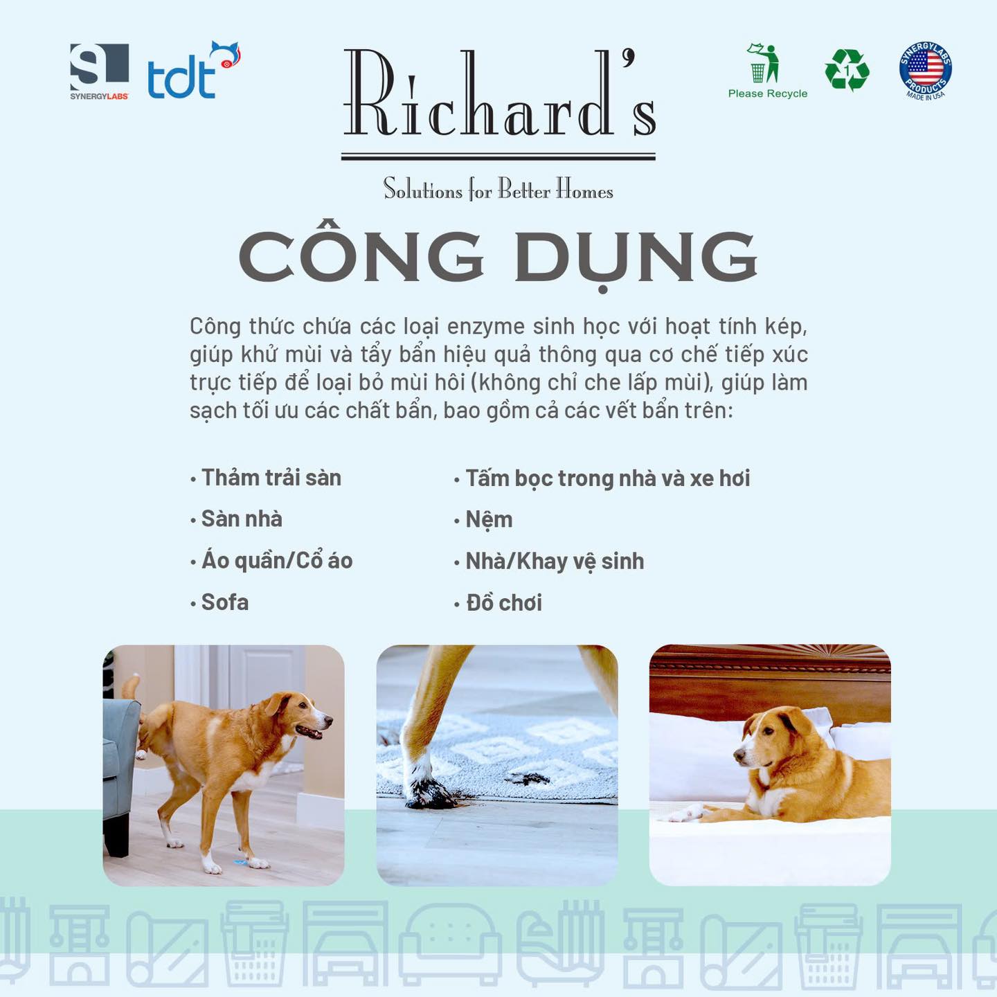 (ODOR SPRAY) XỊT KHỬ MÙI VÀ TẨY BẨN - RICHARD’S STAIN & ODOR ELIMINATORS Richard’s Stain & Odor Eliminator có công thức chứa các loại enzyme sinh học với hoạt tính kép, giúp khử