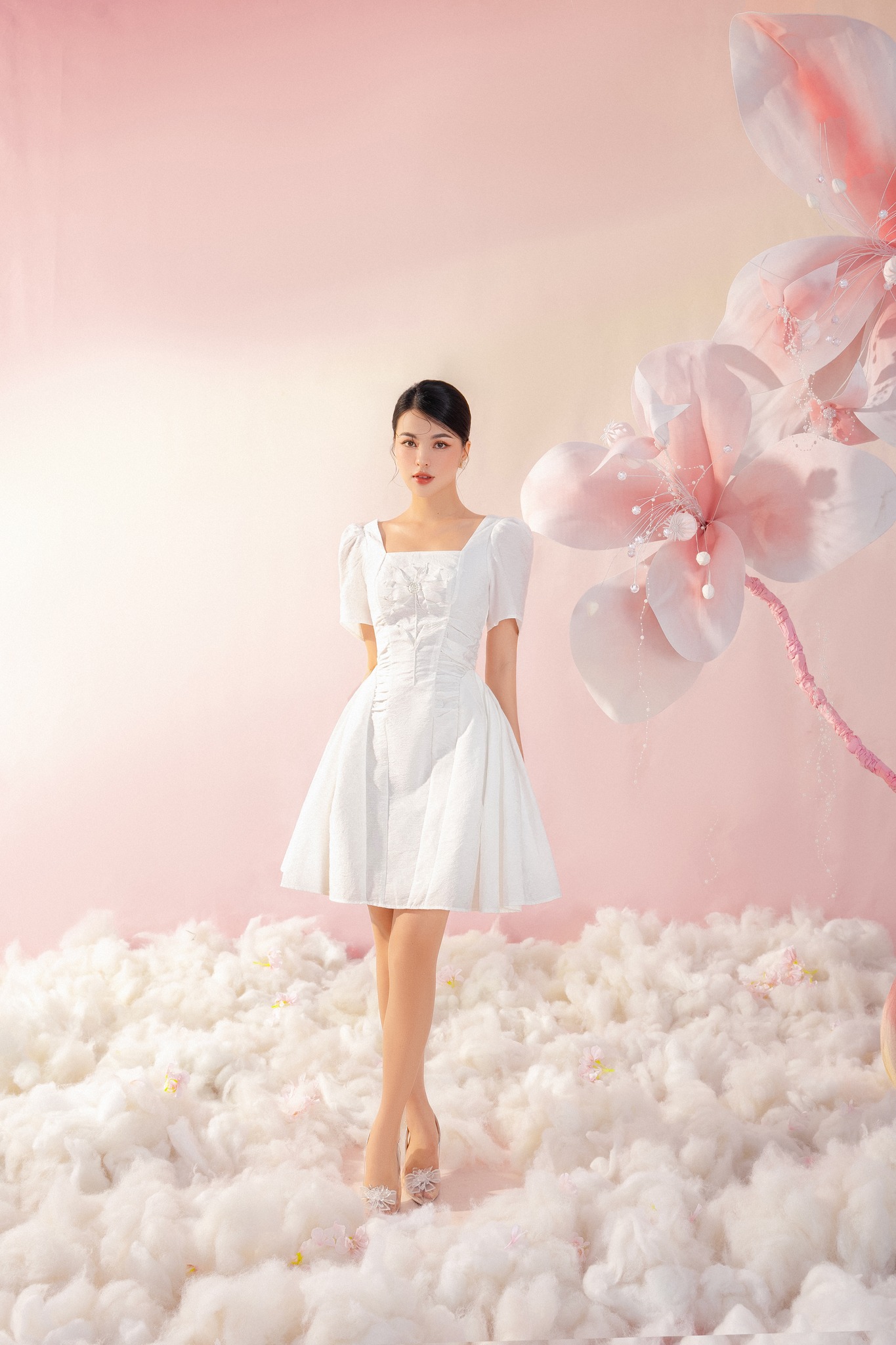 ღ THÔNG TIN SẢN PHẨM: Tên sản phẩm: Đầm trắng cột nơ Thông số size: S, M, L, XL Chất liệu: Chất xốp kim cương Chiều dài Đầm: Size S: 100