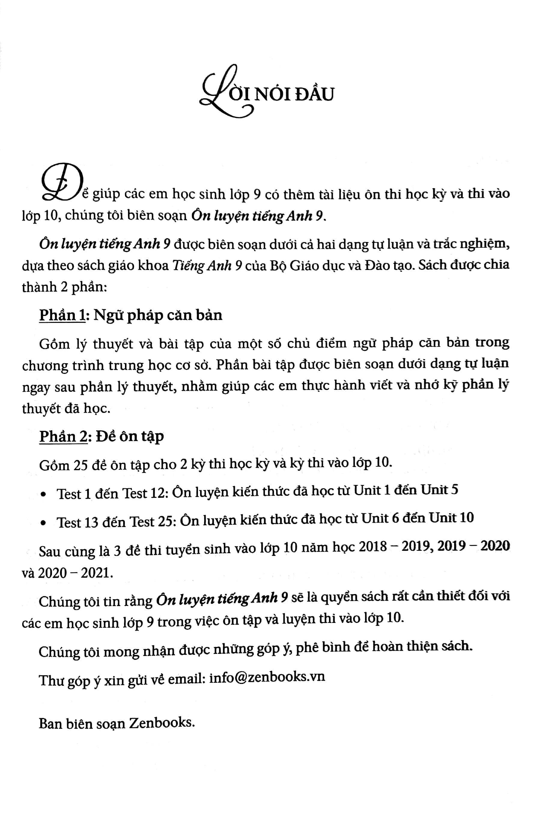 Mua tại TiktokÔn luyện tiếng Anh 9 được biên soạn dưới cả 2 dạng tự luận và trắc nghiệm, dựa theo SGK tiếng Anh 9 của Bộ GD&ĐT. Sách được chia thành 2 phần: