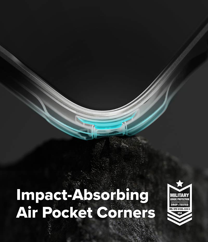 - Ốp lưng hybrid siêu mỏng, thiết kế góc bo cong với công nghệ AirLite, giúp tăng khả năng hấp thụ lực khi va chạm. - Viền camera được nâng cao, cùng khoét lỗ chính