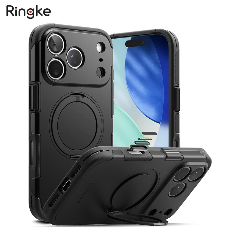 - Có lỗ xỏ dây đeo, bạn có thể mua thêm dây đeo Ringke Strap để tiện dụng hơn (Lưu ý: dây đeo bán riêng, hình ảnh chỉ minh họa cách sử dụng dây đeo) MÔ TẢ SẢN PHẨM Ringke là thương hiệu chất lượng ngành hàng phụ kiện công nghệ. Thành lập năm 2003 tại Hàn Quốc nên Ringke có nhiều kinh nghiệm về thiết kế và sản xuất. Các sản phẩm của Ringke được khách hàng đánh giá cao vì sử dụng nguyên liệu chất lượng tốt, thân thiện với môi trường và chức năng bảo vệ thiết bị tối ưu. Ngoài ra các dòng sản phẩm của Ringke cũng đạt được chứng nhận của Quân đội Mỹ (chuẩn MIL STD 810G 516,6). THÔNG SỐ KỸ THUẬT – Hãng sản xuất: Ringke – Dòng máy đáp ứng: iPhone 17 Pro Max – Chất liệu: Polycarbonate, Polyurethane, Neodymium magnet, Aluminum Alloy – Kiểu dáng: Ốp lưng dạng thanh có chân dựng, có hỗ trợ Magnetic – Chức năng: Bảo vệ, hạn chế rạn nứt, vỡ, chống va đập, trầy xước và làm đẹp – Màu sắc: BLACK, GUN METAL – Trọng lượng: 61.0 gram MỘT SỐ LƯU Ý KHI SỬ DỤNG: 01. Ốp lưng tương thích với dán bảo vệ camera Ringke Lens Frame Glass. Tuy nhiên, cần cẩn thận tránh làm bung dán camera khi tháo lắp ốp vào thiết bị.