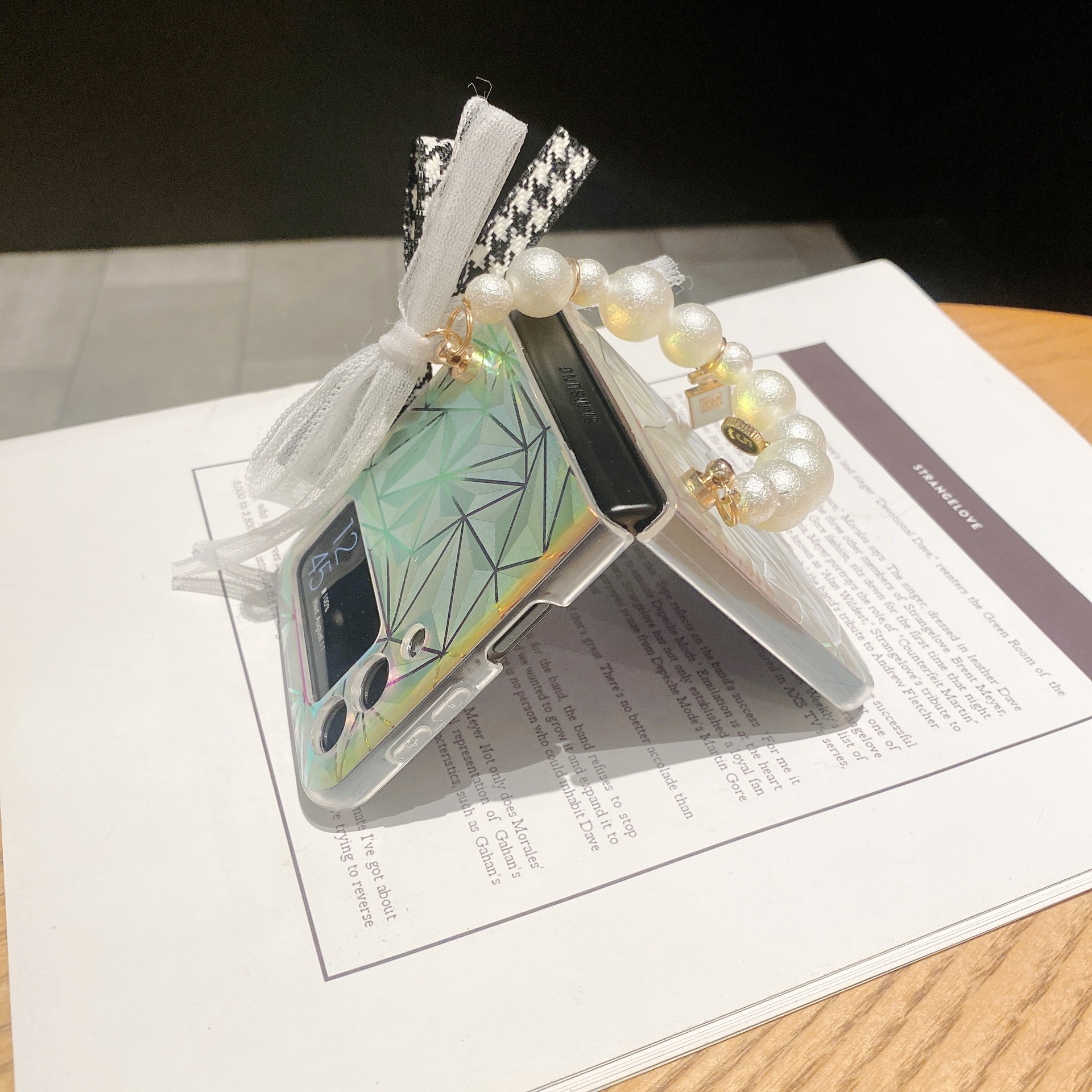 Ốp lưng chống sốc có dây đeo ngọc trai cho Samsung Galaxy Z Flip 4 hiệu HOTCASE Pearl Strap Case (chất liệu cao cấp sang trọng, thiết kế thời trang nữ tính)