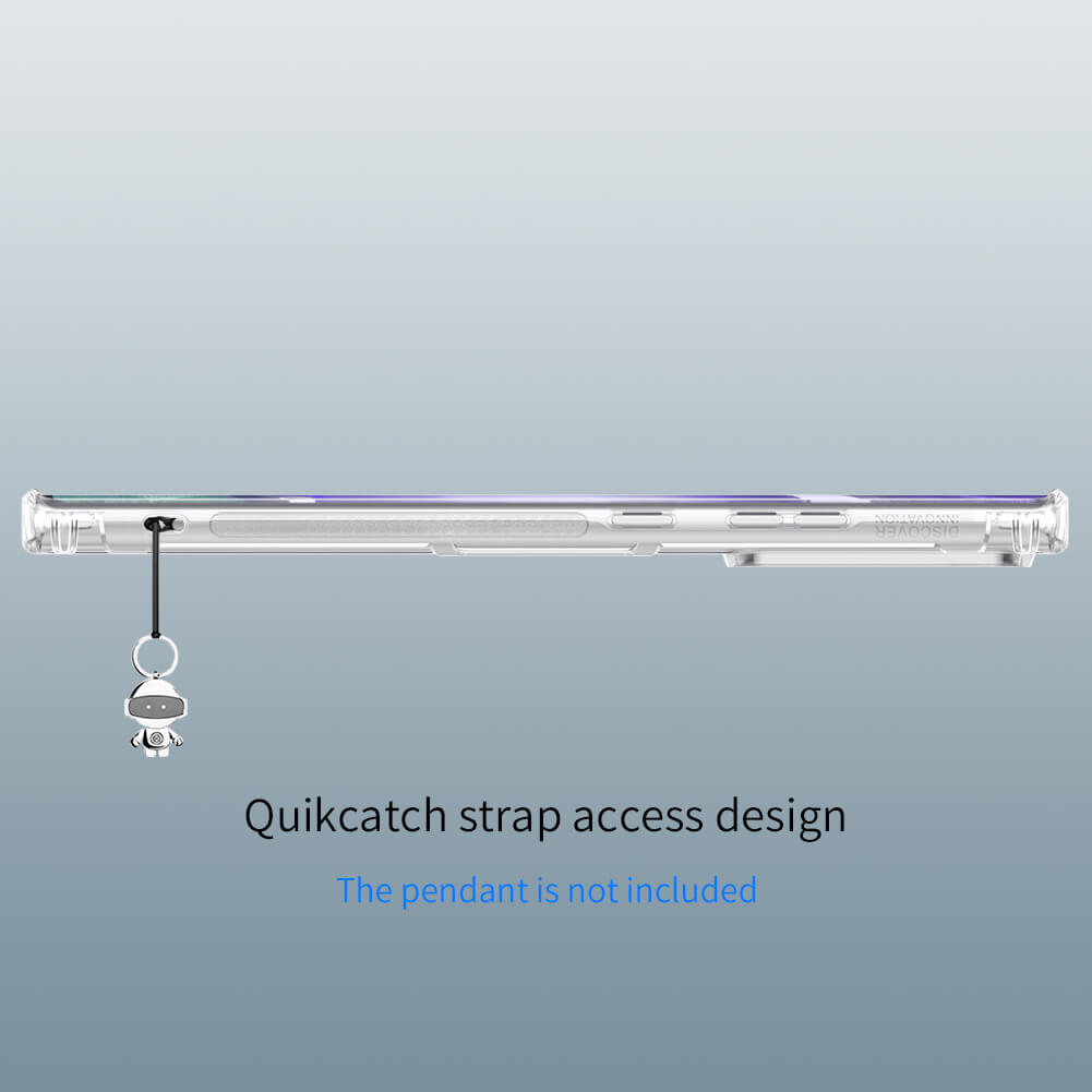 Chất liệu trong với nhiều mầu cá tính như: trắng trong – hồng – xanh – vàng – đỏ được thiết kế tỉ mỉ sắc nét không một chút diềm thô, cạnh bên phía dưới ốp có in logo cua hãng Nillkin sắc nét. Toàn bộ thiết kế sang trọng đẳng cấp của Samsung Galaxy Note 20 Ultra đều được phô bày khi bạn sử dụng ốp lưng Nillkin trong suốt.
