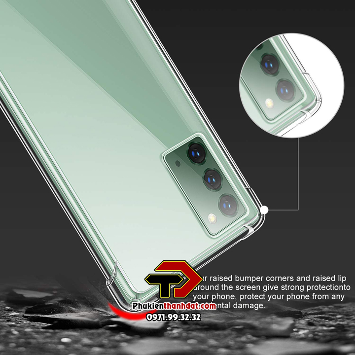 Ốp lưng dẻo trong chống sốcSamSung Galaxy Note 20 được làm từ chất liệu TPU dày 0.9 mm,mềm dẻo, trong suốt, có độ đàn hồi cao, có thể bóp lại, cuộn lại mà không biến dạng. Ốp lưng được thiết kế với 4 góc dày dặn hơn (hầu hết khi rơi máy các góc sẽ va chạm đầu tiến), kết hợp với phần khung viền từ nhựa dẻo TPU cao cấp khá dầy dặn (~1mm).Phần tiếp xúc với cạnh máy có làm thêm các đường gân không những giúp cho ốp cầm chắc tay hơn mà còn tăng khả năng đàn hồi, bảo vệ toàn bộ máy luôn an toàn trước mọi va chạm, mặt lưng còn 4 chấu nhỏ nhô cao để nâng phần lưng của máy lên khi để lên bàn hạn chế xước Camera sau của máy.Ốp lưng dẻo trong chống sốcSamSung Galaxy Note 20 các chi tiết được hoàn thiện rất đẹp, các vết cắt mịn, đều. Các phím bấm được làm nổi giúp thao tác dễ dàng.