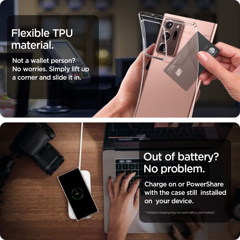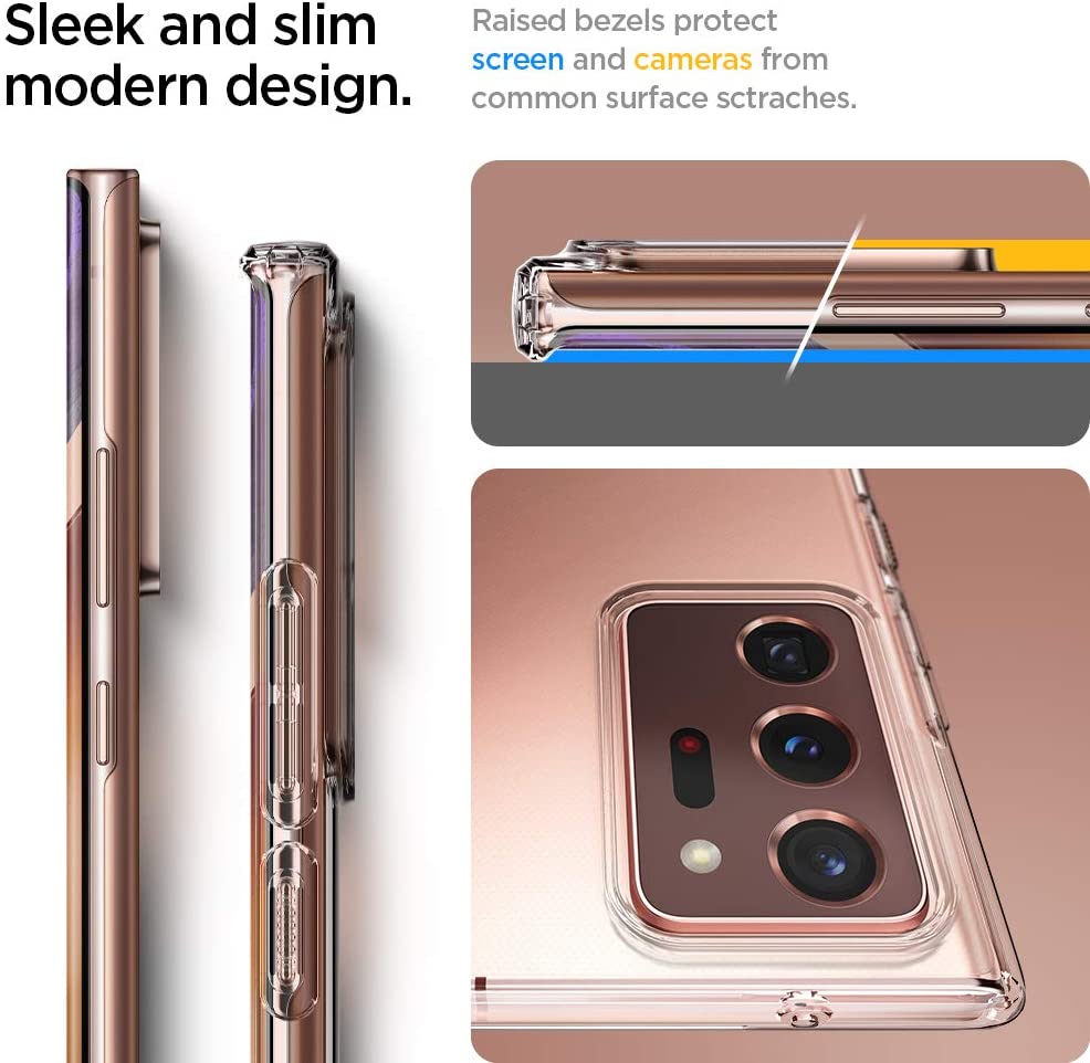 Toàn bộ thiết kế sang trọng đẳng cấp của Samsung Galaxy Note 20 Ultra đều được phô bày khi bạn sử dụng ốp lưng trong suốt.