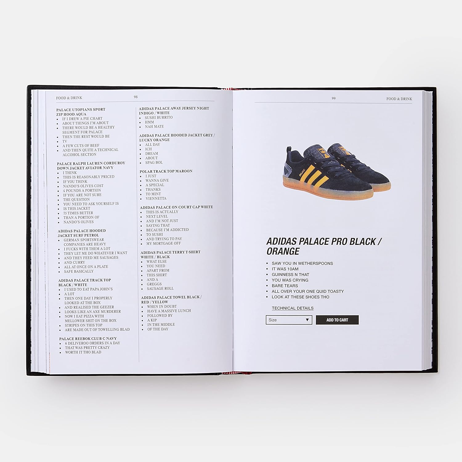 Phaidon presentsPalace Product Descriptions: The Selected Archive, the official printed archive of Palace Skateboard's online product descriptions. Since their debut in 2013, Palace's unconventional descriptors - which often have little or nothing to do with the product being described – have earned a cult following, with readers hooked on every line.