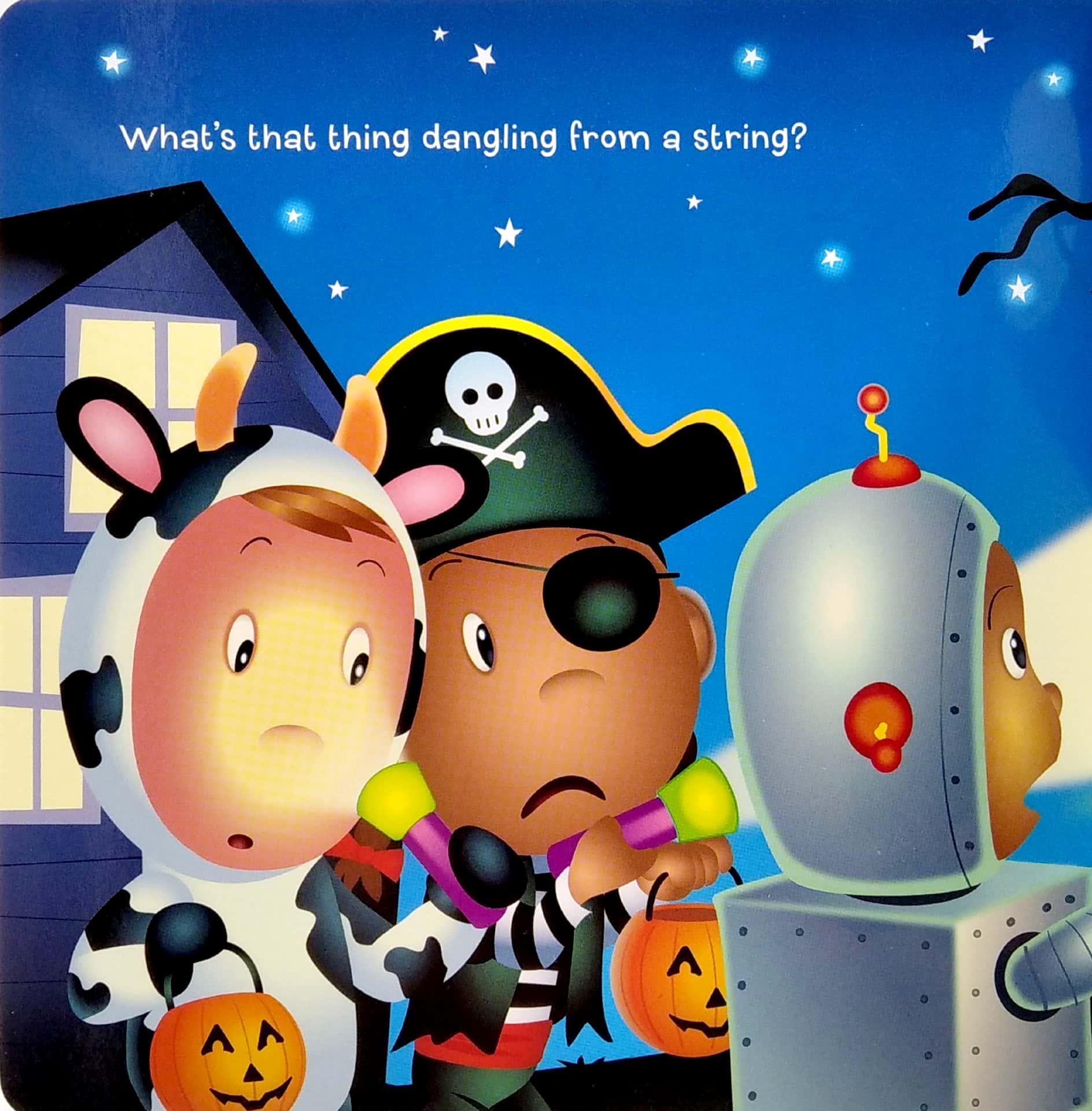 It's Halloween and it's spooky Ghosts, goblins, and witches are ready to fright! Up high in the , what could it be? Lift up the flap, and then you will see!