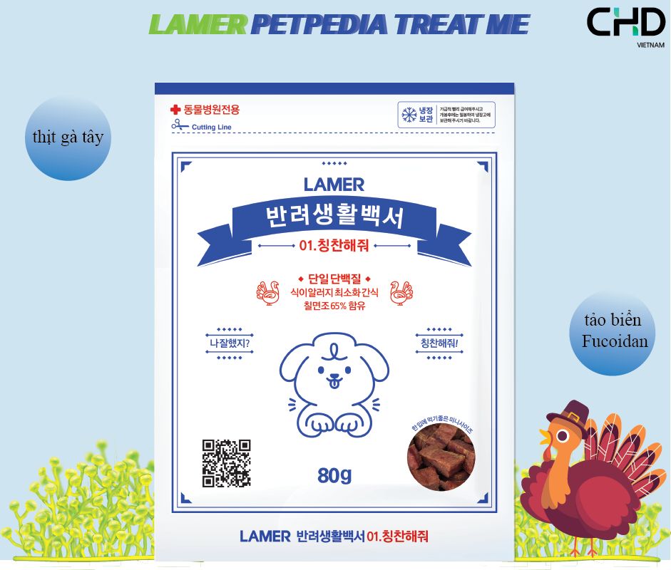 Mua tại TiktokThú cưng của bạn thụ động, tinh thần không thoải mái Hãy chăm sóc sức khỏe, tinh thần của cún cưng nhà bạn với dòng sản phẩm ăn vặt Petpedia Treat Me! [ Protein thuần khiết ] Chế biên từ thịt gà tây hỗ trợ sức khỏe [ Trytophan phong phú, Serotonin ] Có sẵn trong thịt gà tây giúp thúc đẩy “ hormone hạnh phúc “, giảm stress [ Fucoidan, Beta-Glucan ] Loại tảo biển có khả năng tăng cường hệ miễn dịch ở thú cưng [ D-sorbitol, Oligasaccharide ] Cải thiện đường ruột, hỗ trợ tiêu hóa CHD VietNam CHUYÊN CUNG CẤP THỨC ĂN HẠT, DẦU GỘI, SNACK VÀ CÁC SẢN PHẨM CHĂM SÓC KHÁC DÀNH CHO CHÓ MÈO