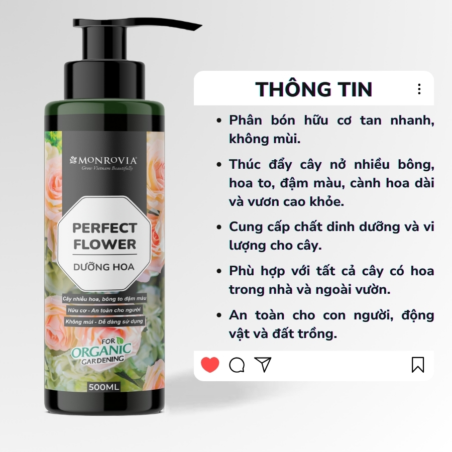 ✨Phân bón DƯỠNG HOA MONROVIA hữu cơ giúp hoa to dậm màu cho hoa hồng, hoa lan, dung tích 500ml