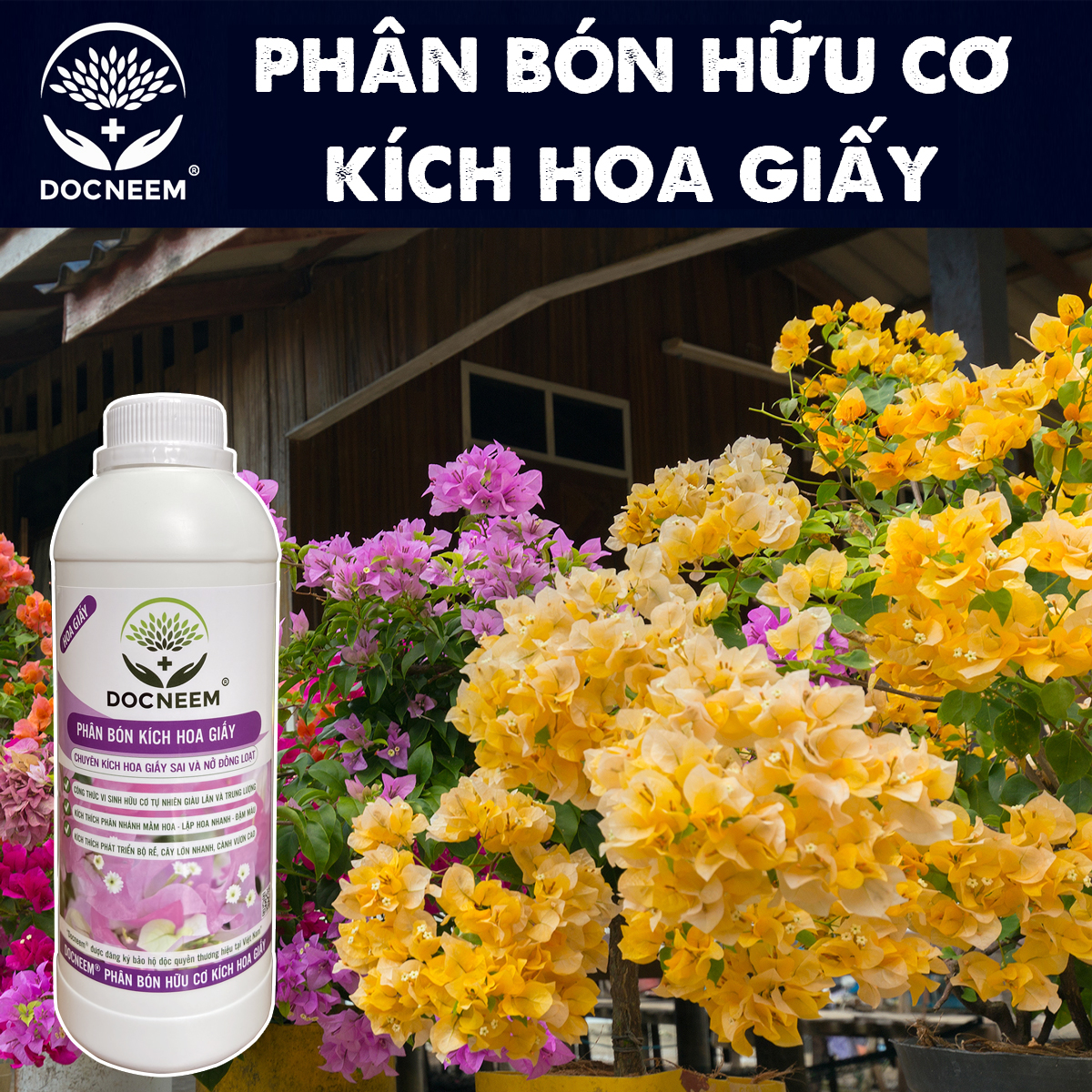 Phân bón hữu cơ kích hoa giấy Docneem PHÂN BÓN DUY NHẤT TRÊN THỊ TRƯỜNG - Giúp hoa giấy lặp hoa nhanh gấp 2 lần các dạng phân bón thông thường - Công thức chuyên
