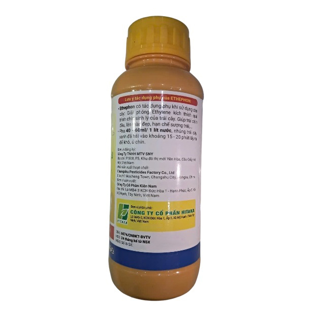 - Chín trái: Pha 20 – 30ml cho 1 lít nước, nhúng trái cây xanh đã hái (Trái cần làm chín) vào khoảng 15 – 20 phút lấy ra để khô, ủ chín.
