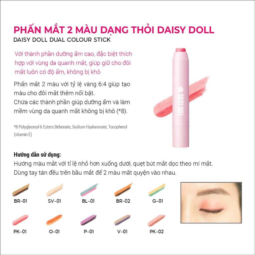 Bạn muốn sở hữu đôi mắt làm sao cho thật tự nhiên, ấn tượng & quyến rũ mà lại TIỆN LỢI, NHANH CHÓNG! Thanh phấn mắt 2 màu Daisy Doll sẽ giải quyết tất cả