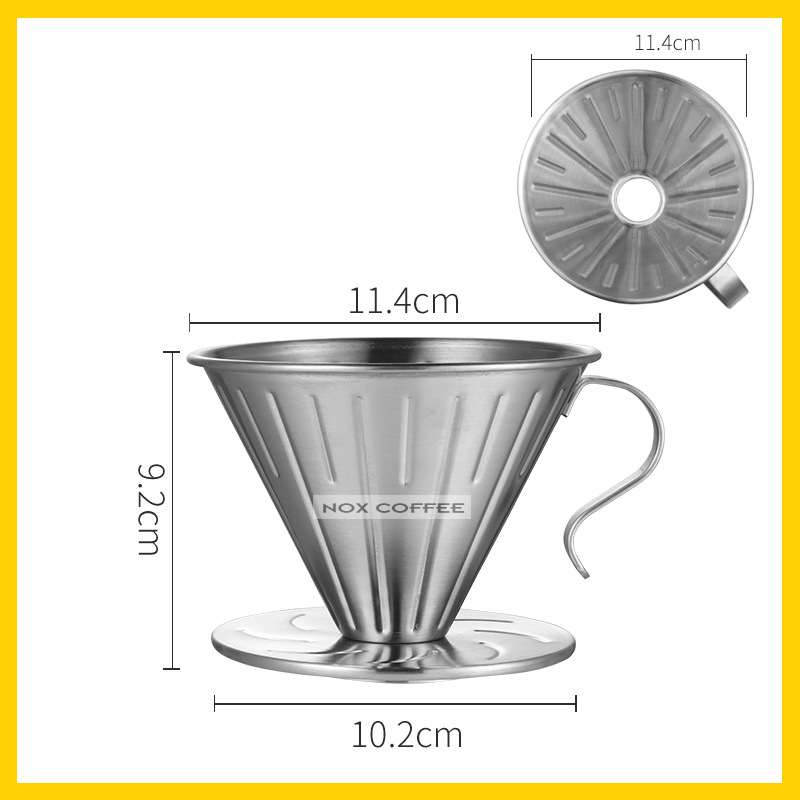 - - - THÔNG TIN SẢN PHẨM + Dung tích: Size 02 pha được 2-4 tách + Kích thước: 102 x 92 x 114mm + Chất liệu: inox 304 - - - Vì sao V60