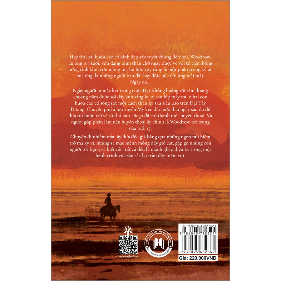 Ngày người ta mắc kẹt trong cuộc Đại Khủng hoảng tối tăm, loạng choạng nắm được sợi dây ánh sáng le lói sau lớp mây mù ở hai con hươu cao cổ sống sót một cách thần kỳ sau siêu bão trên Đại Tây Dương. Chuyến phiêu lưu xuyên Mỹ kéo dài mười hai ngày sau đó để đưa tụi hươu trở về sở thú San Diego đã trở thành một huyền thoại. Và người góp phần làm nên huyền thoại ấy chính là Woodrow trẻ trung của tuổi 17.