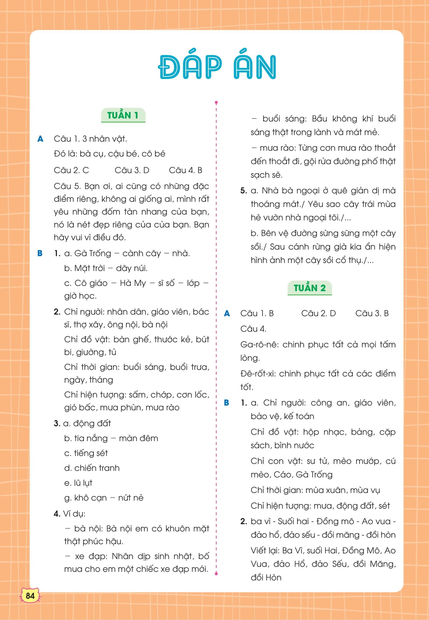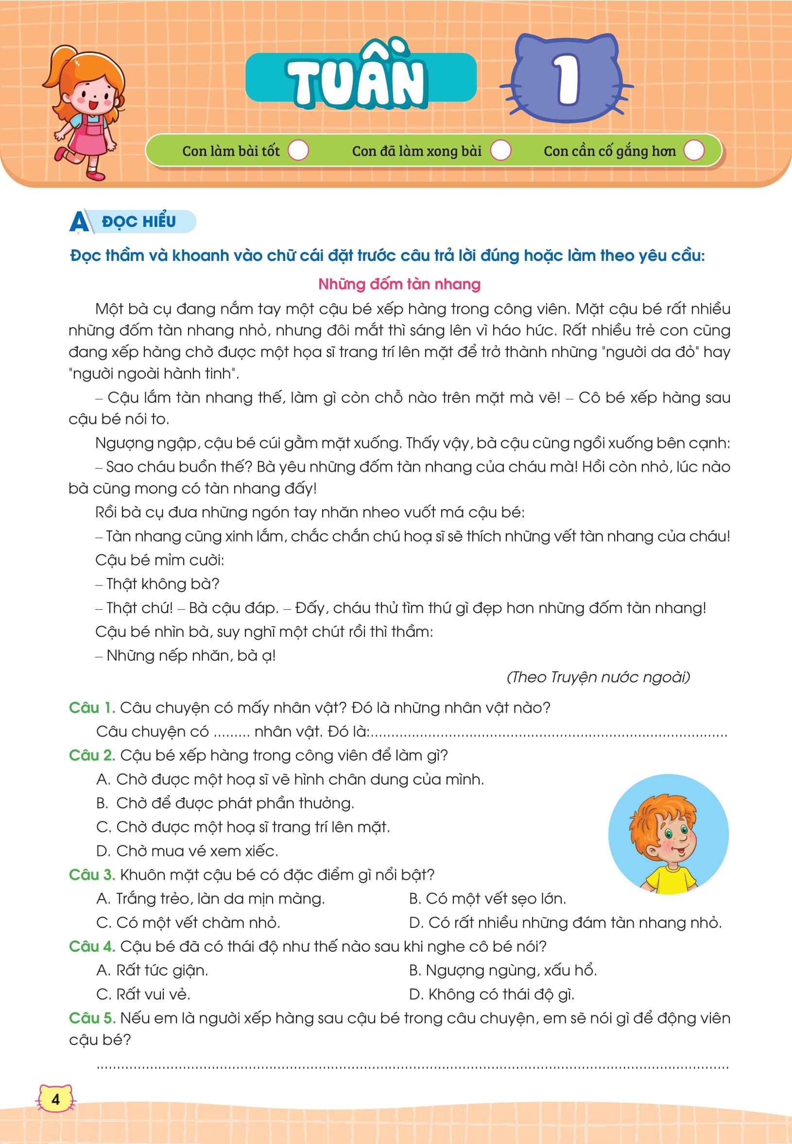 Bộ sách gồm các bài luyện tập chia theo tuần, ôn tập tổng quát kiến thức của 35 tuần học. Ngoài ra, cuốn sách cũng cung cấp các bài kiểm tra giữa kỳ và cuối kỳ để các con trau dồi thêm, tự tin chinh phục điểm cao trong các bài kiểm tra trên lớp.