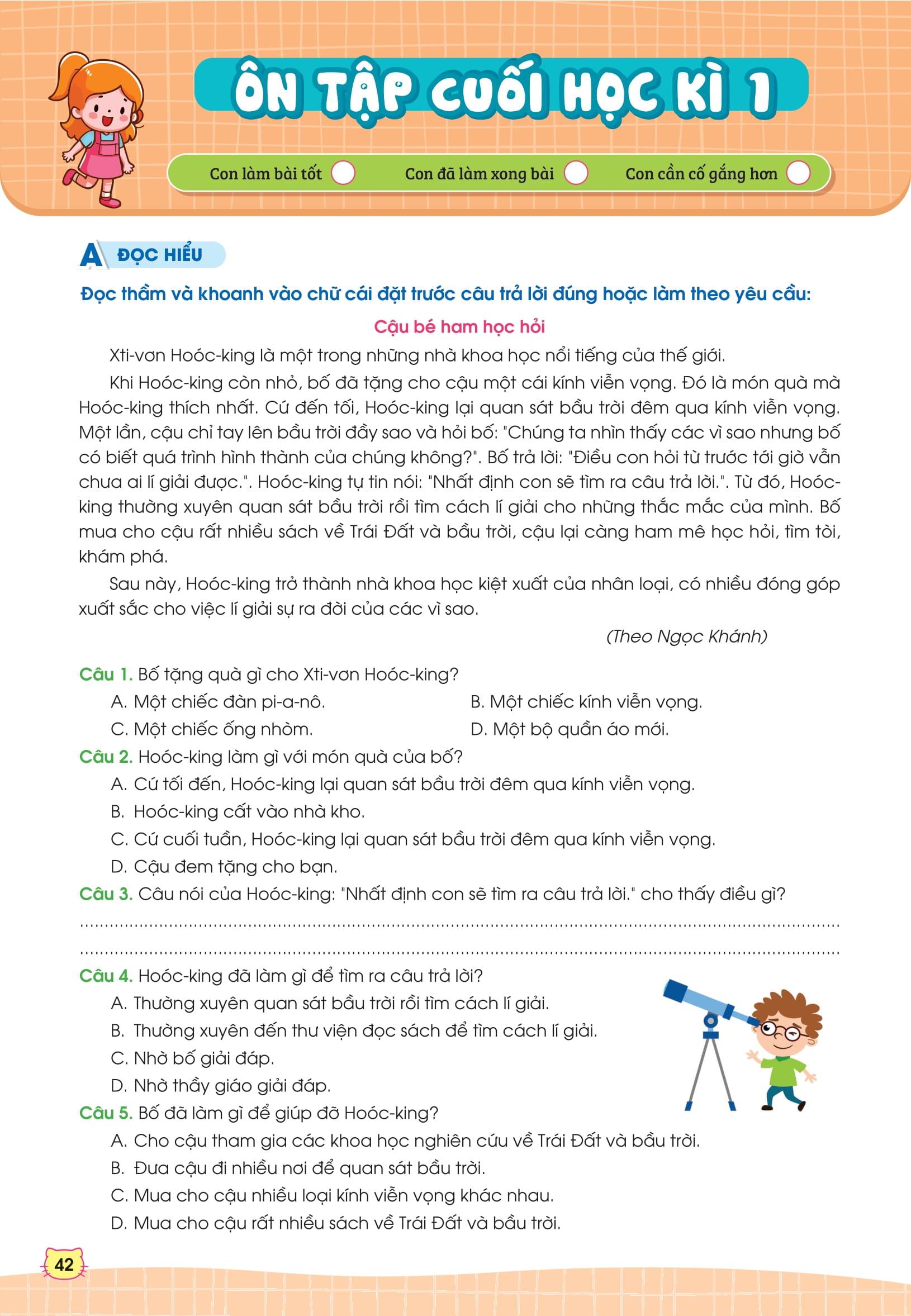Đặc biệt, sau mỗi kì sẽ có bài ôn tập giữa kì và cuối kì giúp con có tài liệu ôn tập cho các kì kiểm tra.