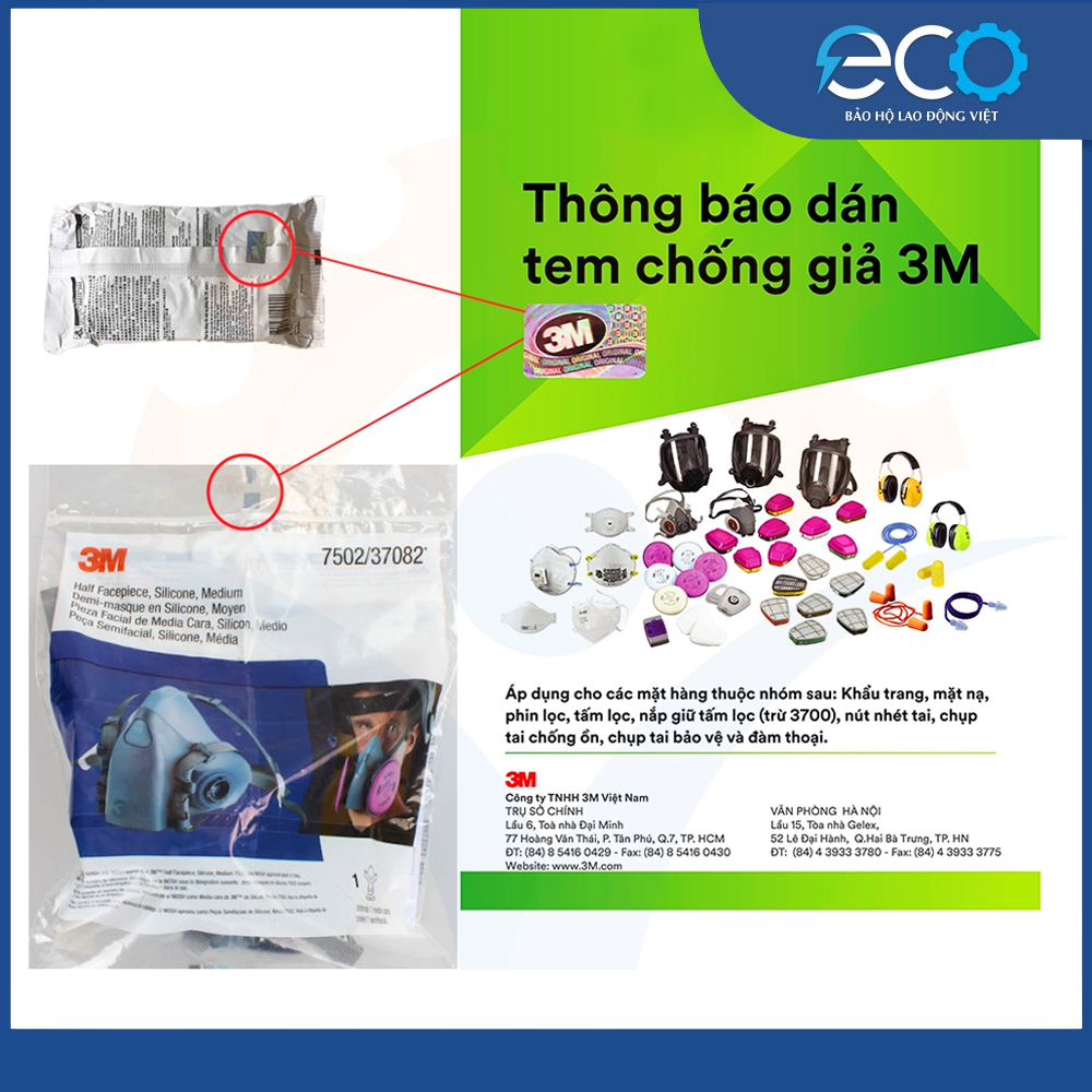 Bộ mặt nạ chống hóa chất 3M 6100/6200 + Phin lọc 3M 6003 - mặt nạ bảo vệ hô hấp Sản phẩm chính hãng 100% được phân phối bởi BHLD ECO ️ Bộ mặt nạ