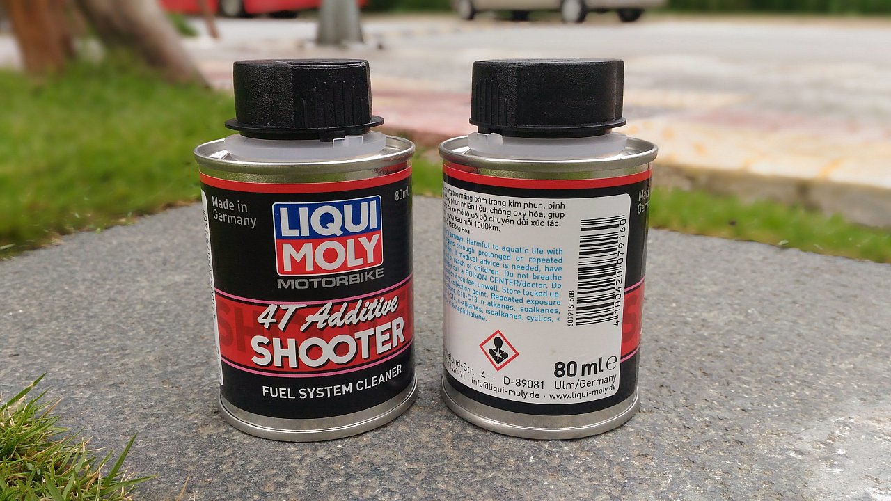 - Bước 2: đổ trực tiếp vào bình xăng (tỉ lệ 80ml cho 10 lít xăng)