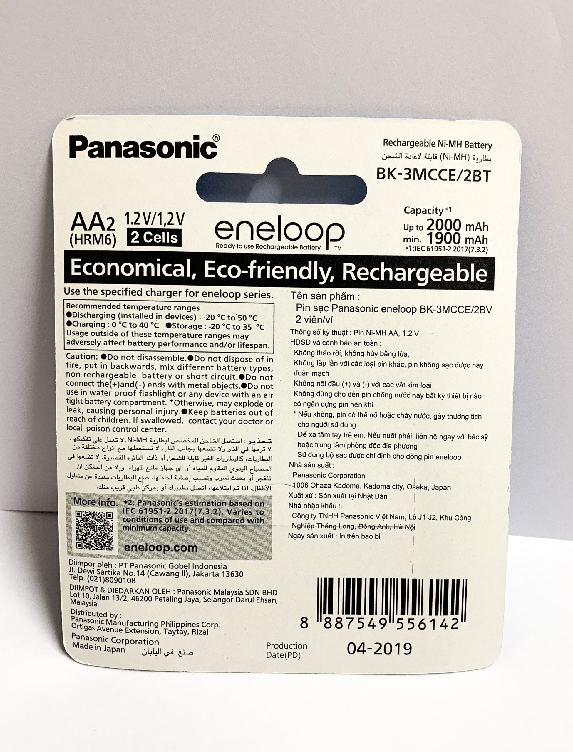 Pin sạc AA Panasonic Eneloop BK-3MCCE/2B 2000 mAh vỉ 2 viên