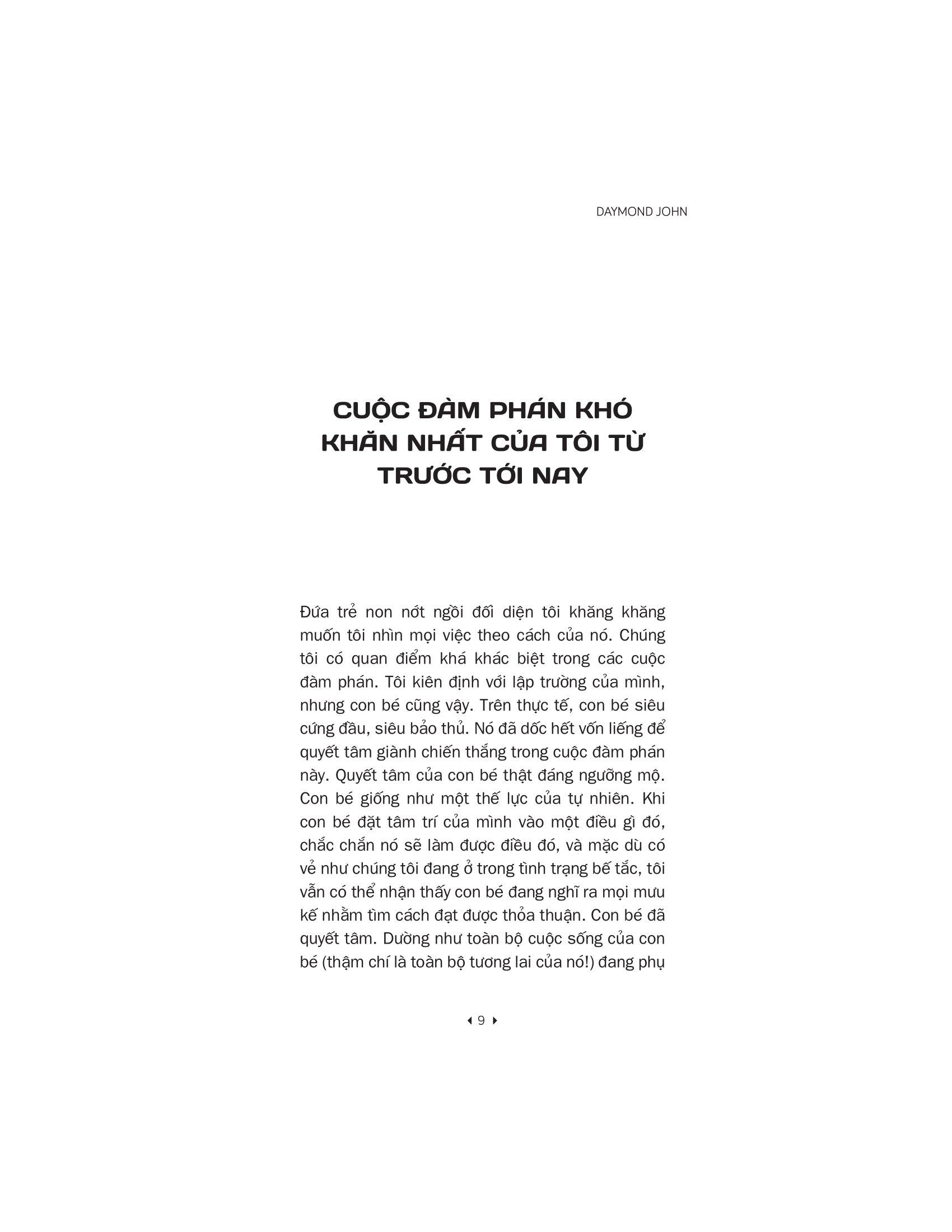 - Các mối quan hệ tạo nên sự kết nối lâu dài: Hãy nuôi dưỡng những kết nối mà bạn tạo ra trong suốt chặng đường. Thông qua những câu chuyện chưa từng được kể trong cuộc đời và sự nghiệp của m.ình, Daymond chia sẻ những bài học đưa ông đến vị trí như ngày hôm nay: từ cách ông làm lại hình ảnh trước công chúng khi chuyển từ ông trùm quần áo sang nhân vật truyền hình, đến cách ông nắm vững các chiến lược đàm phán. Tất cả những bí quyết quyết định các giao dịch thắng hay thua trong thế giới của các Shark, cũng như những bí mật của ông ấy trong việc xây dựng mối quan hệ lâu dài và có lợi với những người sáng lập và thương hiệu sẽ được tiết lộ trong sách. Xuyên suốt cuốn sách, một số nhân vật thành công nhất thế giới tiết lộ cách họ thay đổi quyền lực của m.ình theo những cách ấn tượng, như ngôi sao Kris Jenner, tỷ phú Mark Cuban, rapper Pitbull. Cho dù bạn là một nhà đổi mới đang nỗ lực biến ý tưởng lớn của m.ình thành hiện thực, một chuyên gia đang mong muốn được thăng chức hay một phụ huynh bận rộn đang cố gắng tìm thêm thời gian để tập trung vào những gì thực sự quan trọng với m.ình, Daymond sẽ chỉ cho bạn cách thay đổi sức mạnh và năng lượng hướng tới sự thay đổi tích cực.