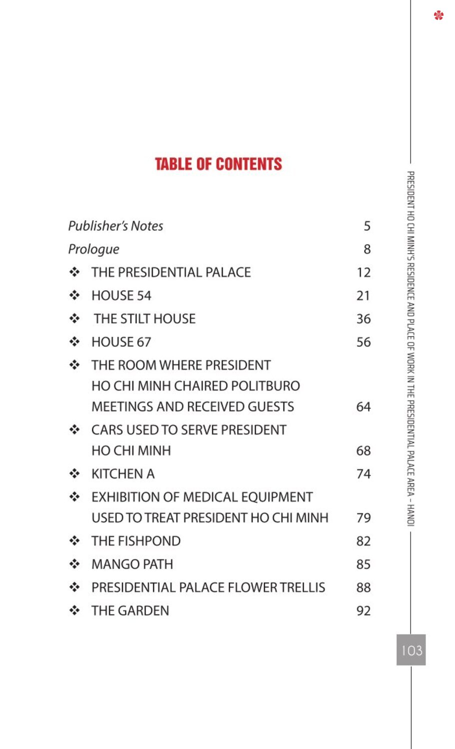 Cuốn sách nhằm giúp bạn đọc hiểu thêm về nơi ở và làm việc của Chủ tịch Hồ Chí Minh, về những giá trị lịch sử - văn hóa của Khu di tích Phủ Chủ