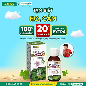 Siro ho Promax New 100ml được chiết xuất từ mật ong, cao lá thường xuân, chiết xuất hoa phong lữ… giúp hạn chế ho nhiều, giúp giảm đau rát họng, khản tiếng do ho kéo dài. Hỗ trợ giảm các biểu hiện hắt hơi, sổ mũi, chảy nước mũi do cảm lạnh.