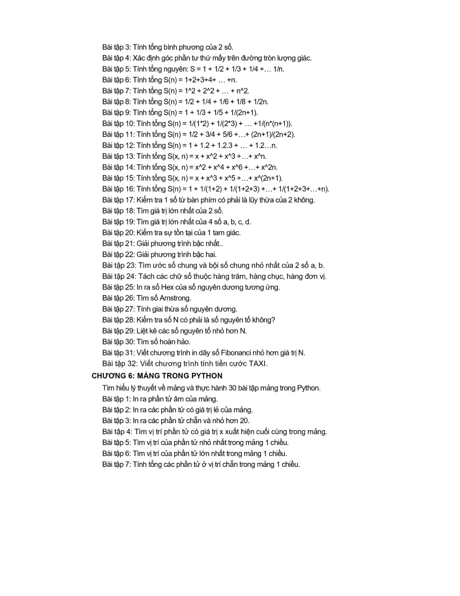 Bài Tập Thực Hành Python (Phần Cơ Bản) Cuốn sách này giới thiệu đến bạn đọc ngôn ngữ Python, một trong những ngôn ngữ được sử dụng rộng rãi nhất trên thế giới. Phổ