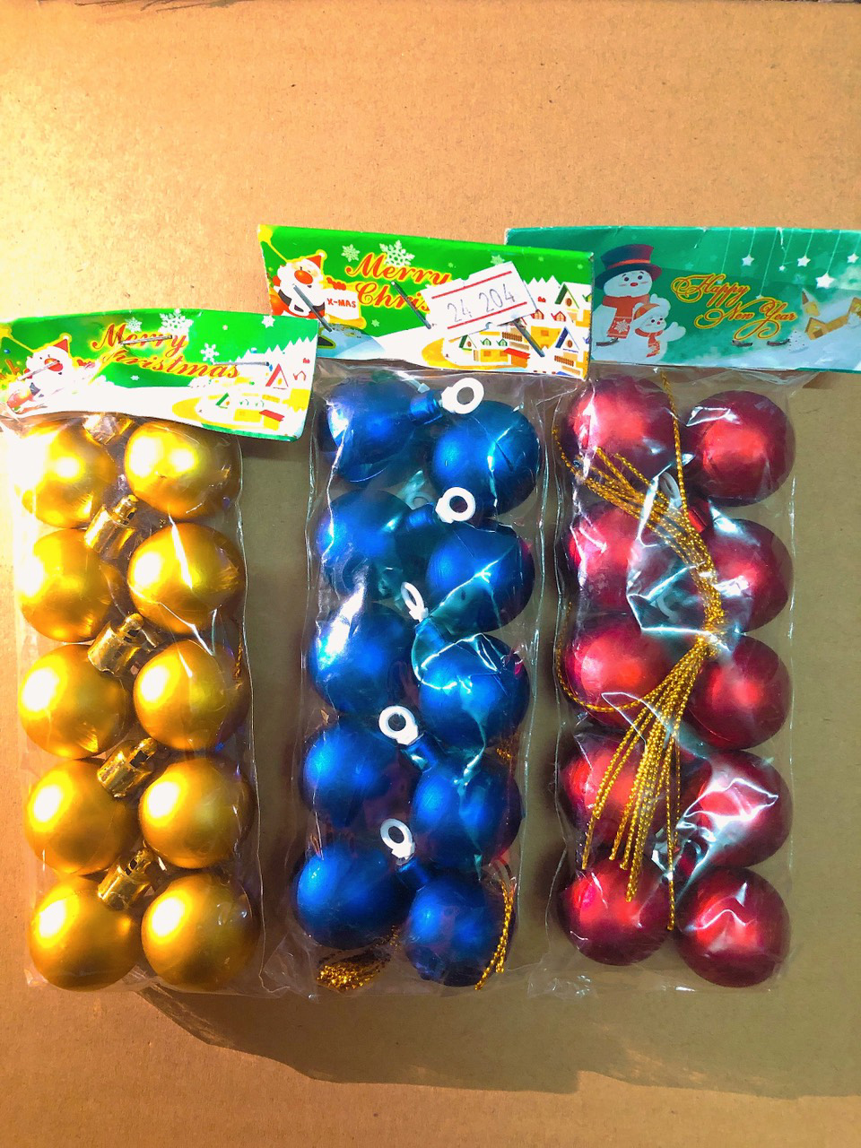 Đóng gói: 1 hộp châu trang trí Noel (Hộp 24 quả) ️ Tính năng Quả châu trang trí với nhiều màu sắc thích hợp để trang trí nhà cửa, treo cây thông giáng sinh. Kèm