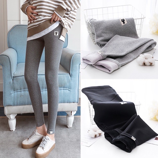 Quần Legging Bầu mèo lót lông siêu ấm Kích cỡ: Free size (45-65kg) Màu: Đen, Xám Chất đẹp, Lót lông mềm mịn, dày dặn. Co giãn tốt Cạp có chun điều chỉnh mặc thoải mái