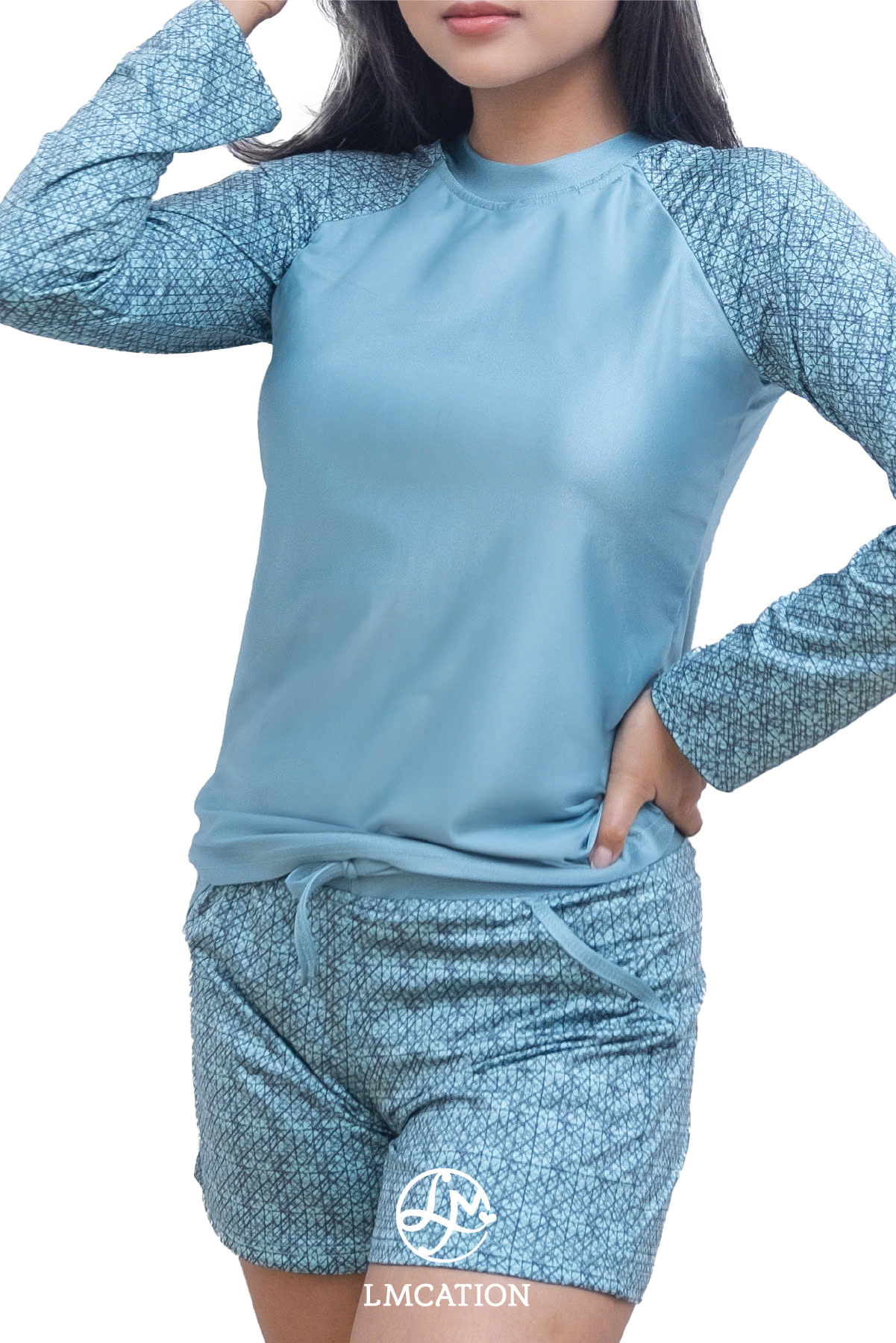 Áo bơi 2 lớp tay dài LMcation Quinn Top được thiết kế theo phong cách truyền thống, có cổ tròn cổ điển, tay áo dài và vừa vặn mang lại sự thoải mái và che