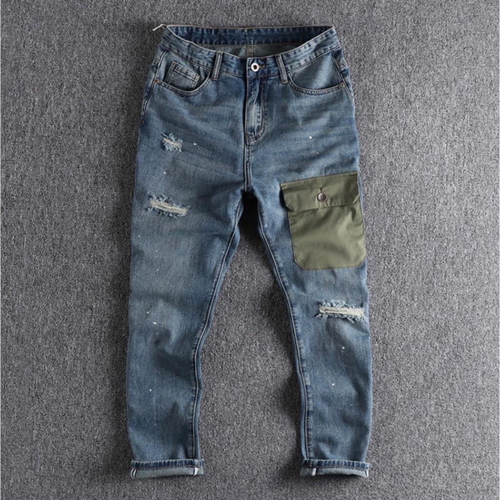 ✨Quần jean bụi rách Retro_chiến thuật_dã ngoại