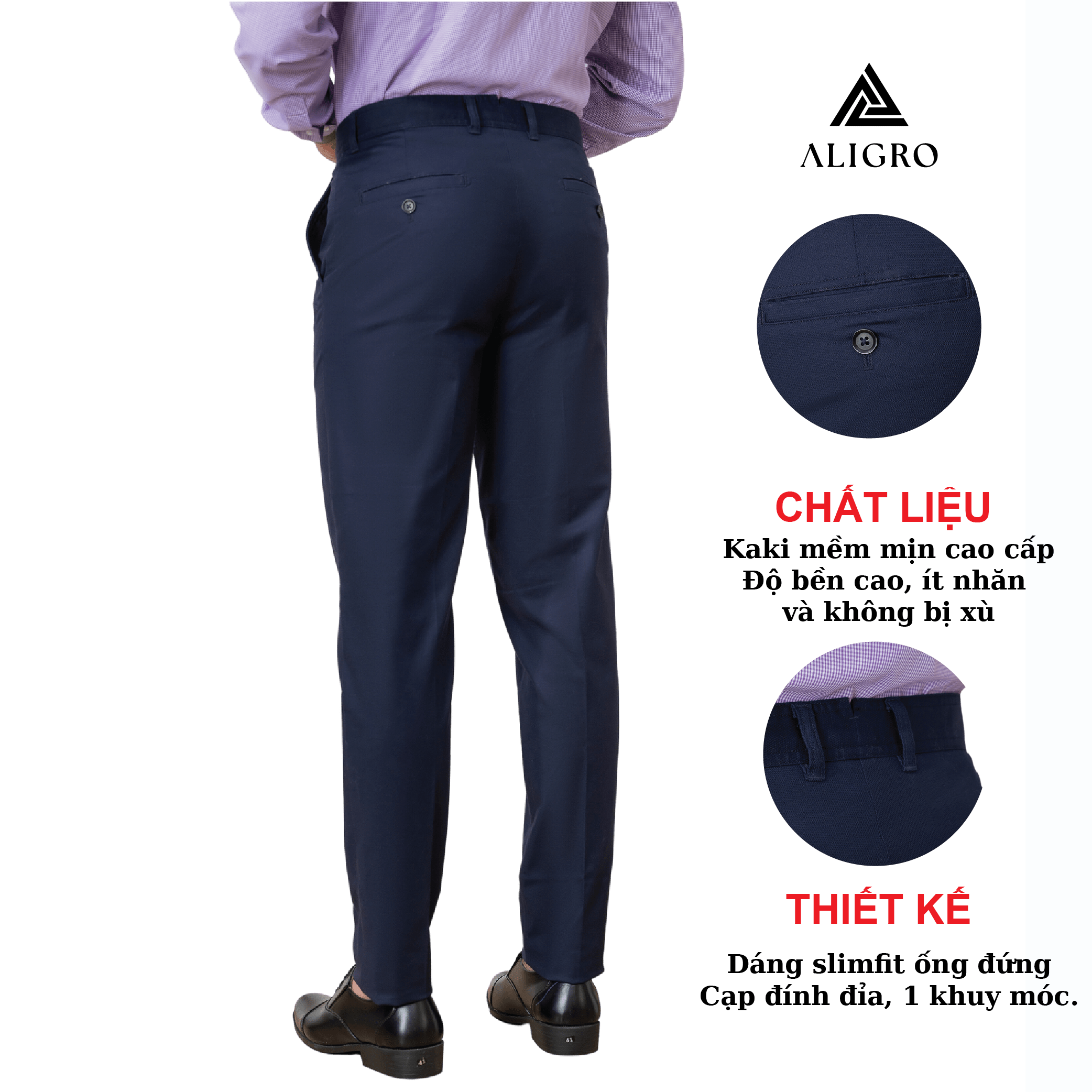 Mua tại TiktokGIỚI THIỆU THƯƠNG HIỆU Mang trong mình tầm nhìn chiến lược trở thành thương hiệu “Thời trang nam được yêu thích nhất Việt Nam” nên Aligro luôn chú trọng nghiên cứu phát triển mẫu mã, phom dáng phù hợp với vóc dáng hình thể đàn ông Việt. Sản phẩm của chúng tôi mang tới hình ảnh trẻ trung, năng động, hiện đại mà không kém phần lịch sự, sang trọng - cam kết mang lại giá trị đích thực và một cuộc sống thịnh vượng hơn cho phái mạnh Việt. CHI TIẾT THIẾT KẾ QUẦN KAKI NAM ALIGRO