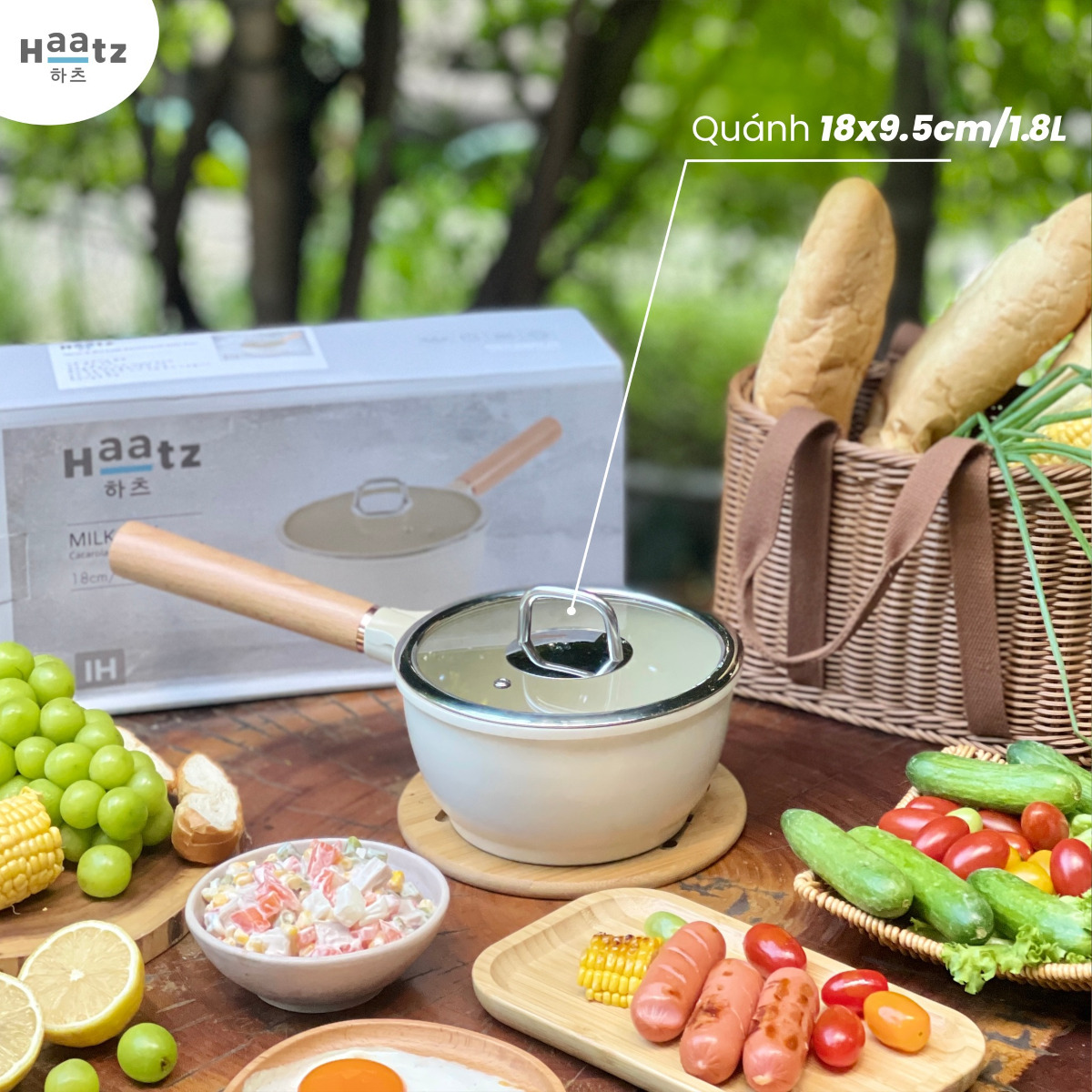 ✨Quánh chống dính phủ gốm Haatz Hàn Quốc size 18cm vung kính đáy từ