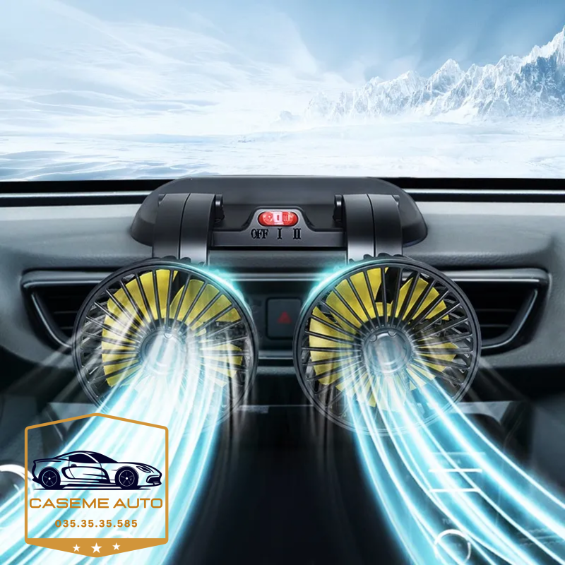 Quạt đôi. giải nhiệt mùa hè về sll. Xoay 360độ, Không cản trở tầm nhìn . Nguồn USB 5V/2A. Dùng trên xe 12/24v đều được. Quạt rất mát và mạnh. chạy vô cùng êm