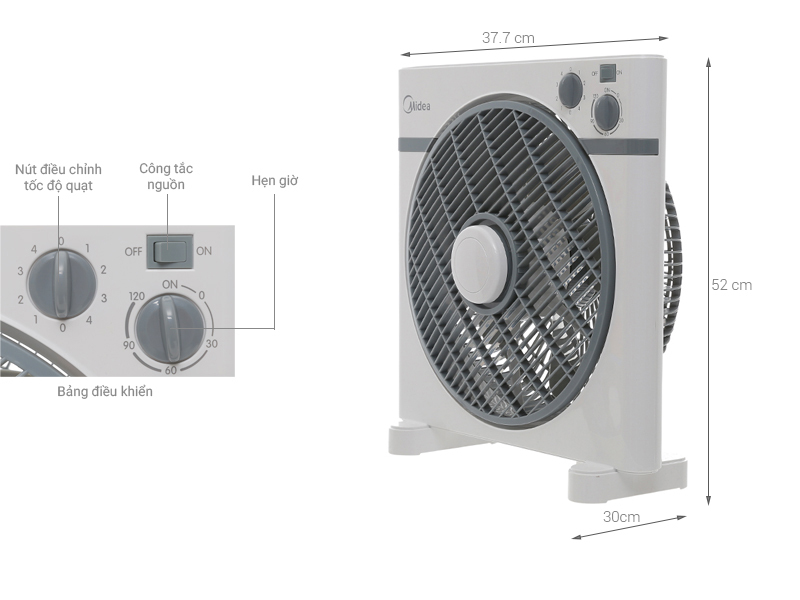 ✨Quạt Hộp Midea KYT30-15A (Hàng Chính Hãng, Công suất 40W, 5 Cánh, Chỉnh Gió 4 Tốc Độ, Có Chức Năng Hẹn Giờ)