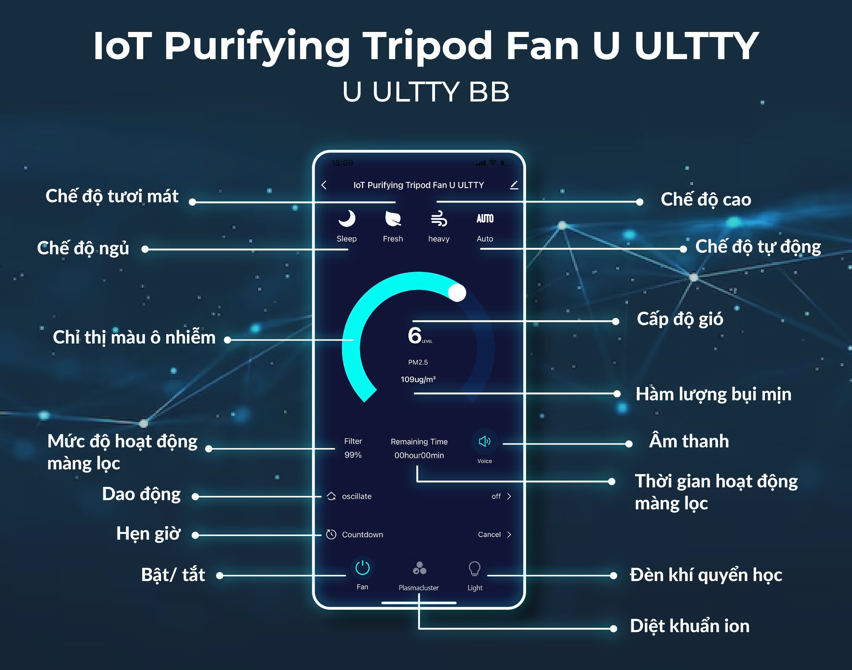 Điều khiển Quạt lọc không khí và khử khuẩn U ULTTY BB từ mọi nơi thông qua kết nối App