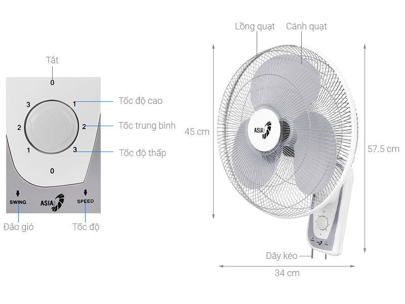 Quạt Asia Treo Tường Hai Dây Asia Model L16018 | Làm Mát Không Khí với Động Cơ Bền Bĩ Theo Thời Gian