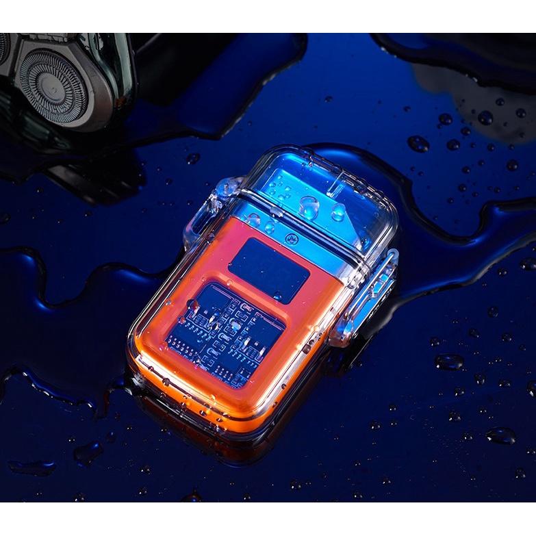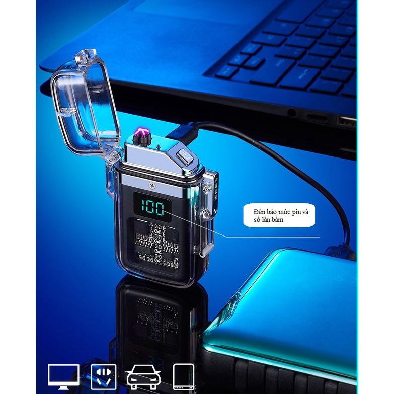 ✨Quẹt Sạc Điện Plasma Chống Nước, Chống Gió, Vỏ Trong Suốt, Có màn hình hiển thị pin