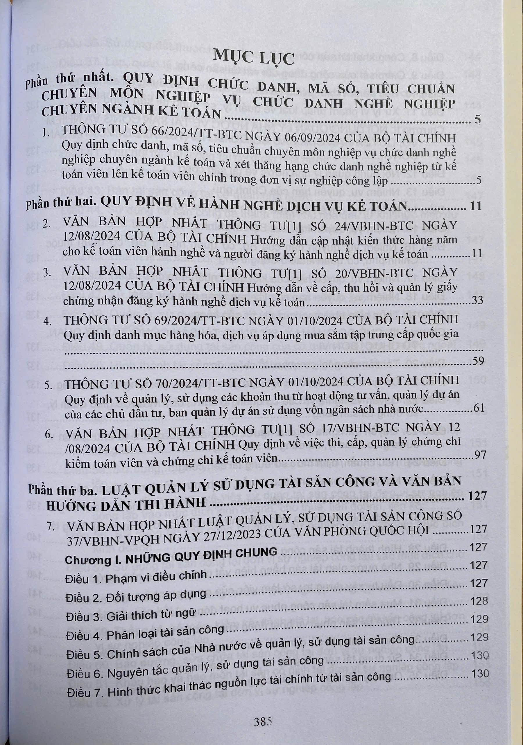 Công tác quản lý, sử dụng tài sản công nước ta thời gian qua đã đạt được những kết quả quan trọng, góp phần thực hành tiết kiệm, chống lãng phí, huy động, khai thác hiệu quả nguồn lưc tài chính từ tài sản công. Để nâng cao hiệu lực, hiệu quả quán lý, sử dụng tài sản công đáp ứng yêu cầu phát triên kinh tế - xã hội, vừa qua Chính phú và Bộ ngành ban hành nhiều văn bản hướng dẫn thi hành mới như Nghị định số 114/2024/NĐ-CP ngày 15/09/2024 về sửa đổi, bổ sung một số điều của Nghị định số 151/2017/NĐ-CP quy định chi tiết một số điều của Luật Quản lý, sử dụng tài sản công, Nghị định số 108/2024/NĐ-CP ngày 23/08/2024 Quy định việc quản lý, sử dụng và khai thác nhà, đất là tài sản công không sử dụng vào mục đích để ở giao cho tổ chức có chức năng quản lý, kinh doanh nhà địa phương quản lý, khai thác. Ngày 06/09/2024, Bộ Tài chính cũng ban hành Thông tư 66/2024/TT-BTC quy định chức danh, mã số, tiêu chuẩn chuyên môn nghiệp vụ chức danh nghề nghiệp chuyên ngành kế toán và xét thăng hạng chức danh nghề nghiệp từ kế toán viên lên kế toán viên chính trong đơn vị sự nghiệp công lập.