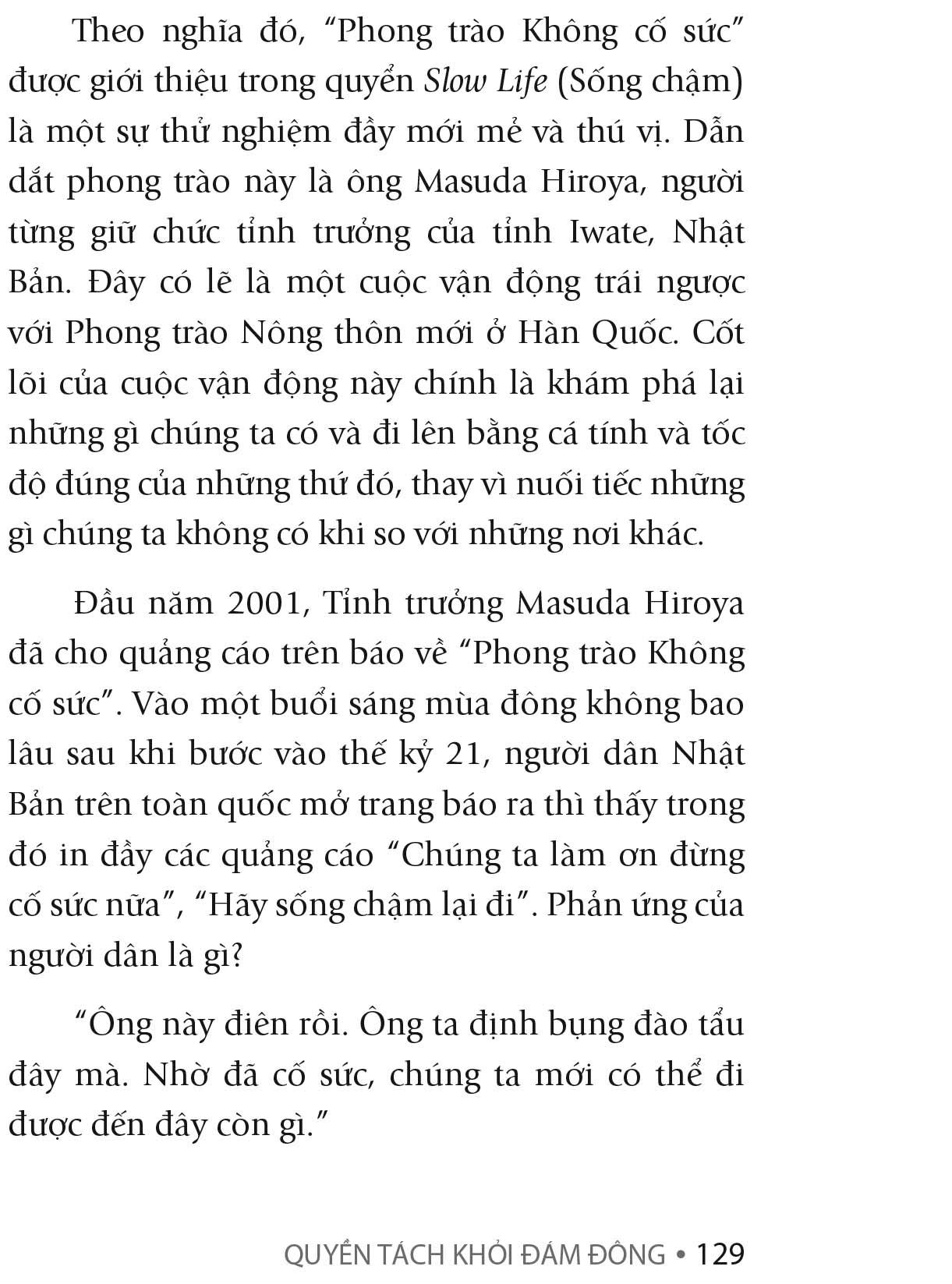 “QUYỀN TÁCH KHỎI ĐÁM ĐÔNG”Niềm hạnh phúc đến từ việc bình thản bỏ cả những tham vọng của khối óc, lẫn sự bận bịu của trái timChúng ta đều bị mắc bẫy bởi câu nói: “Hãy nỗ lực hơn nữa”. Đó là lý do vì ...