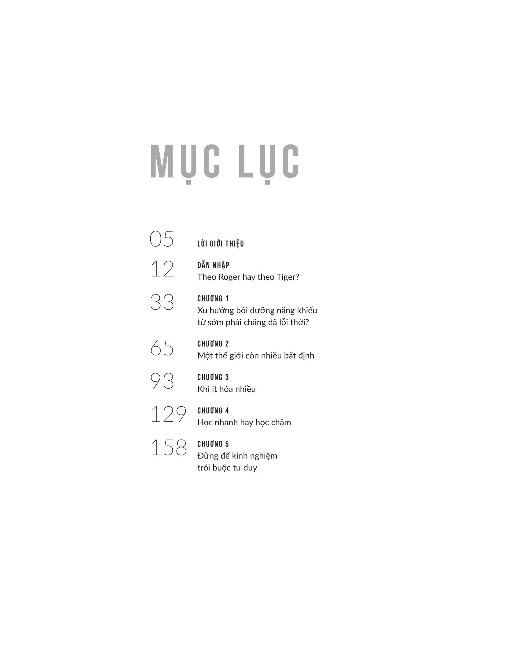 David Epstein đã kiểm tra các vận động viên, nghệ sĩ, nhạc sĩ, nhà phát minh, nhà dự báo và nhà khoa học thành công nhất thế giới. Ông phát hiện ra rằng trong hầu hết các lĩnh vực – đặc biệt là những lĩnh vực phức tạp và khó đoán – những người có tư duy tổng quát (chứ không phải chuyên gia) đều có tố chất xuất sắc. Những người theo chủ nghĩa tổng quát thường tìm ra con đường của m.ình muộn và họ có nhiều mối quan tâm hơn là tập trung vào một. Họ cũng sáng tạo hơn, nhanh nhẹn hơn và có thể tạo ra những kết nối mà những đồng nghiệp chuyên môn hóa không thể nhìn thấy.